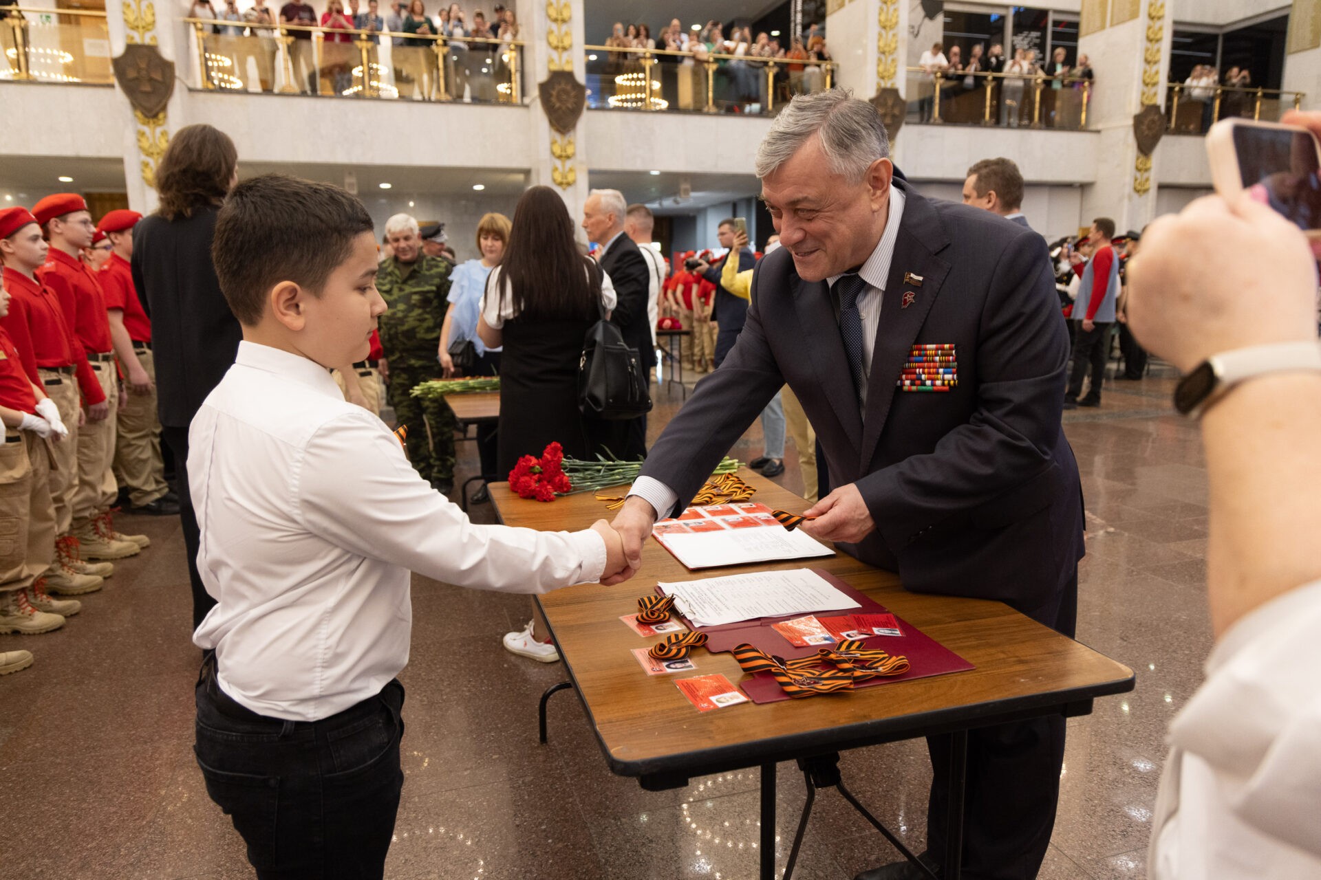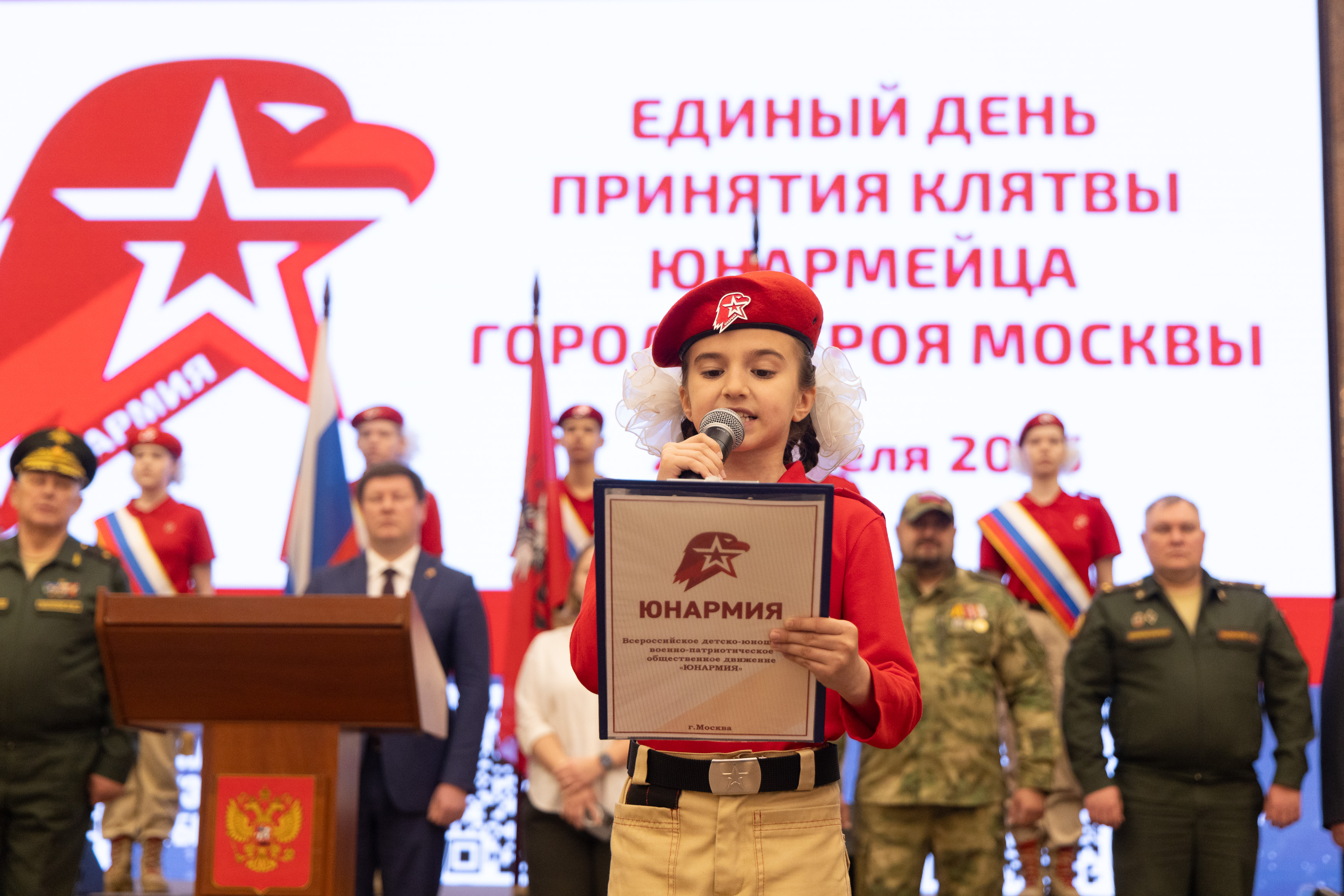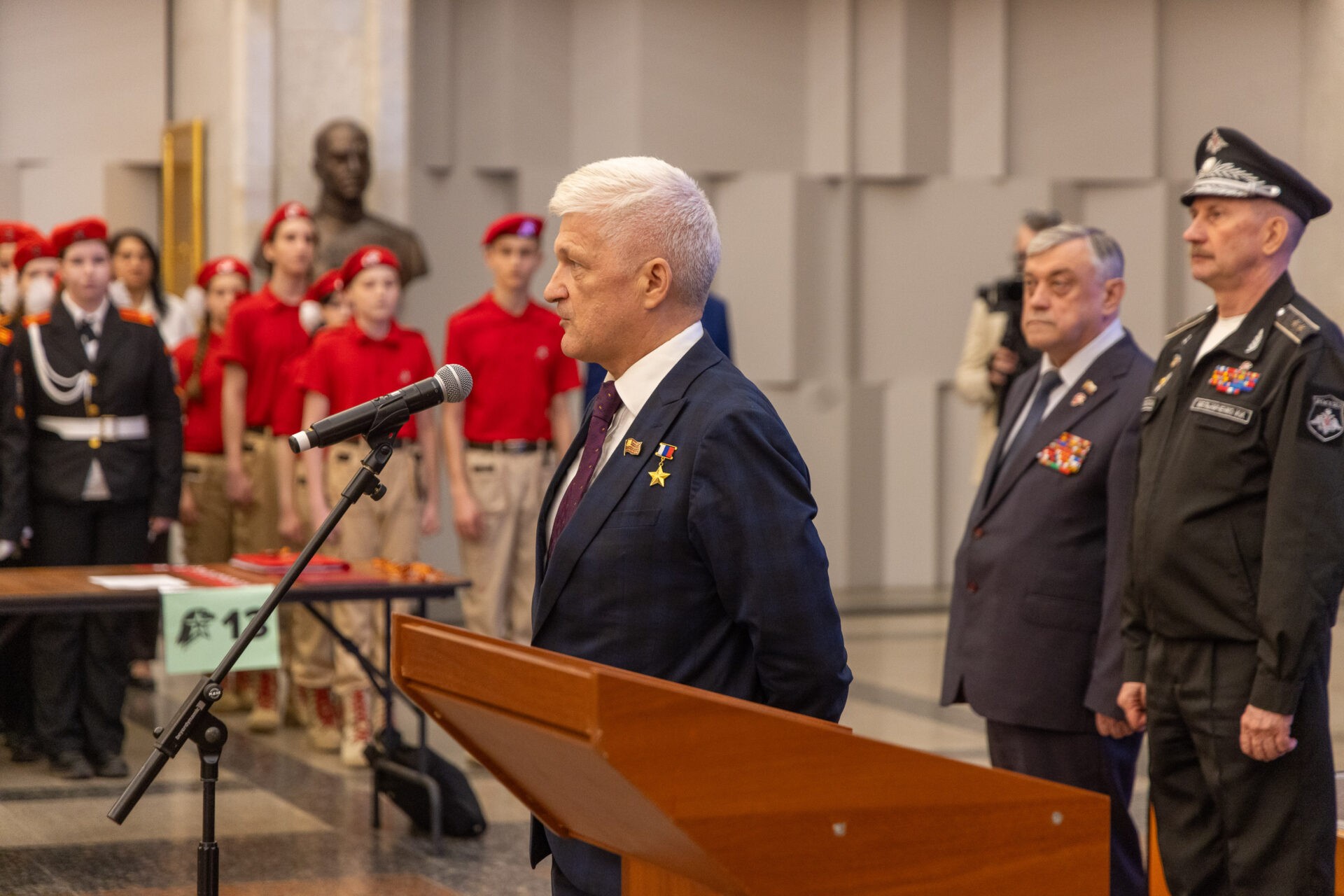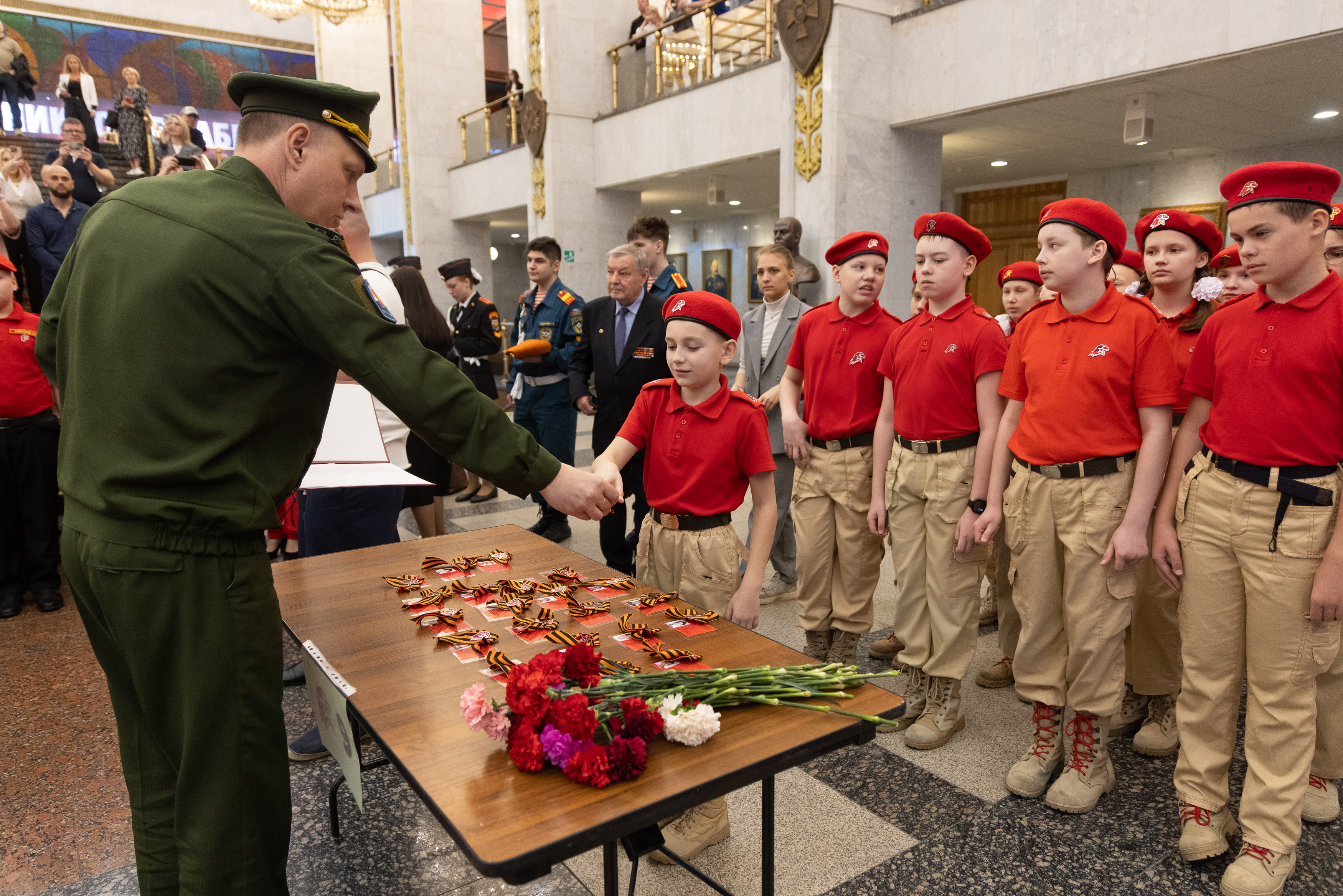 На торжественном мероприятии в Зале Полководцев присутствовали начальник МО ВВПОД «Юнармии» по ЗАО города Москвы Валентин Батиевский, председатель ДОСААФ России Александр Дворников, Герой России Вячеслав Сивко, председатель «Российского Союза Ветеранов» Виталий Азаров и другие почетные гости. Поддержать ребят приехали родители и друзья.