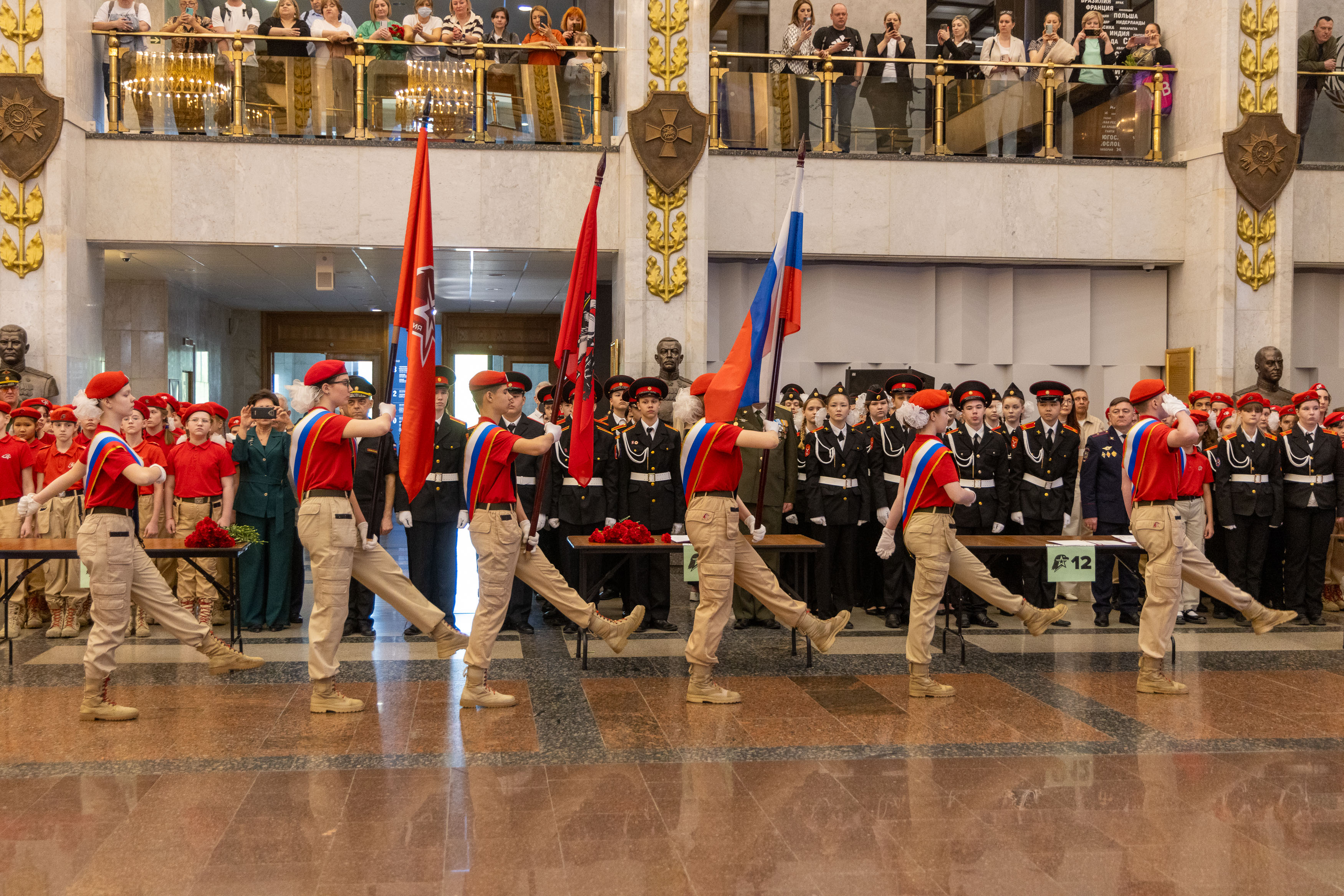 Перед началом церемонии посвящения в юнармейцы участники возложили цветы в Зале Славы, где увековечены имена героев Великой Отечественной войны. Завершилось мероприятие фотографированием в Зале Полководцев и возложением цветов к Вечному огню на площади Победы.