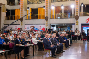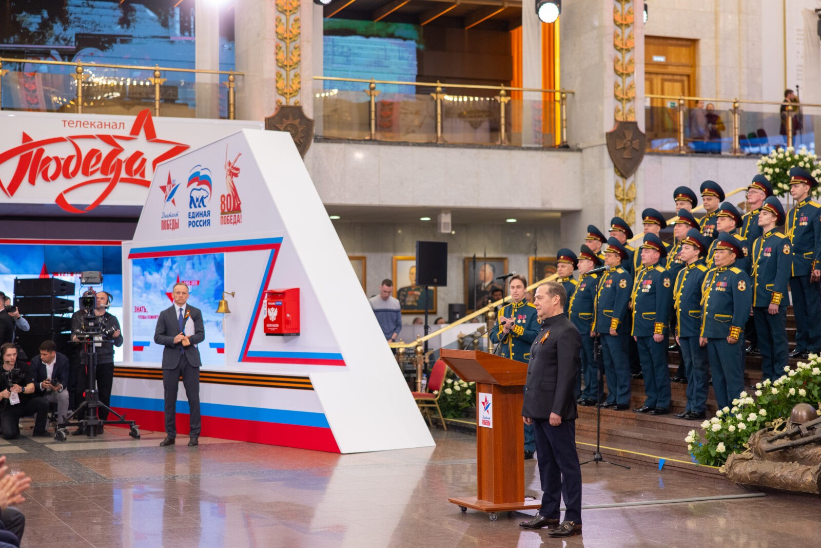 На центральной площадке Международной патриотической акции «Диктант Победы» вели прямую трансляцию для 2 миллионов участников в России и 84 странах. Торжественную церемонию открыло выступление заместителя председателя Совета безопасности РФ, председателя Всероссийской политической партии «Единая Россия» Дмитрия Медведева.