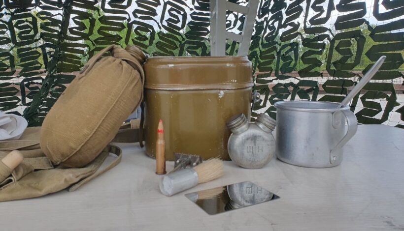 «Самое необходимое, что было у солдата в вещмешке, — это, наверное, портянки. Чтобы ноги не натирало в кирзовых сапогах. Еще из необходимого — фляжка для воды и котелок. Котелок легким движением руки превращался, допустим, в сковородку, и можно было что-нибудь пожарить на костре. Также у солдата в вещмешке был швейный набор, бритвенные принадлежности, мыло. Еще масленка для смазки и прочистки оружия. Обязательно — алюминиевая кружка с ложкой», — рассказала аниматор тематической точки «Что у солдата в вещмешке?» Алена Кокон.