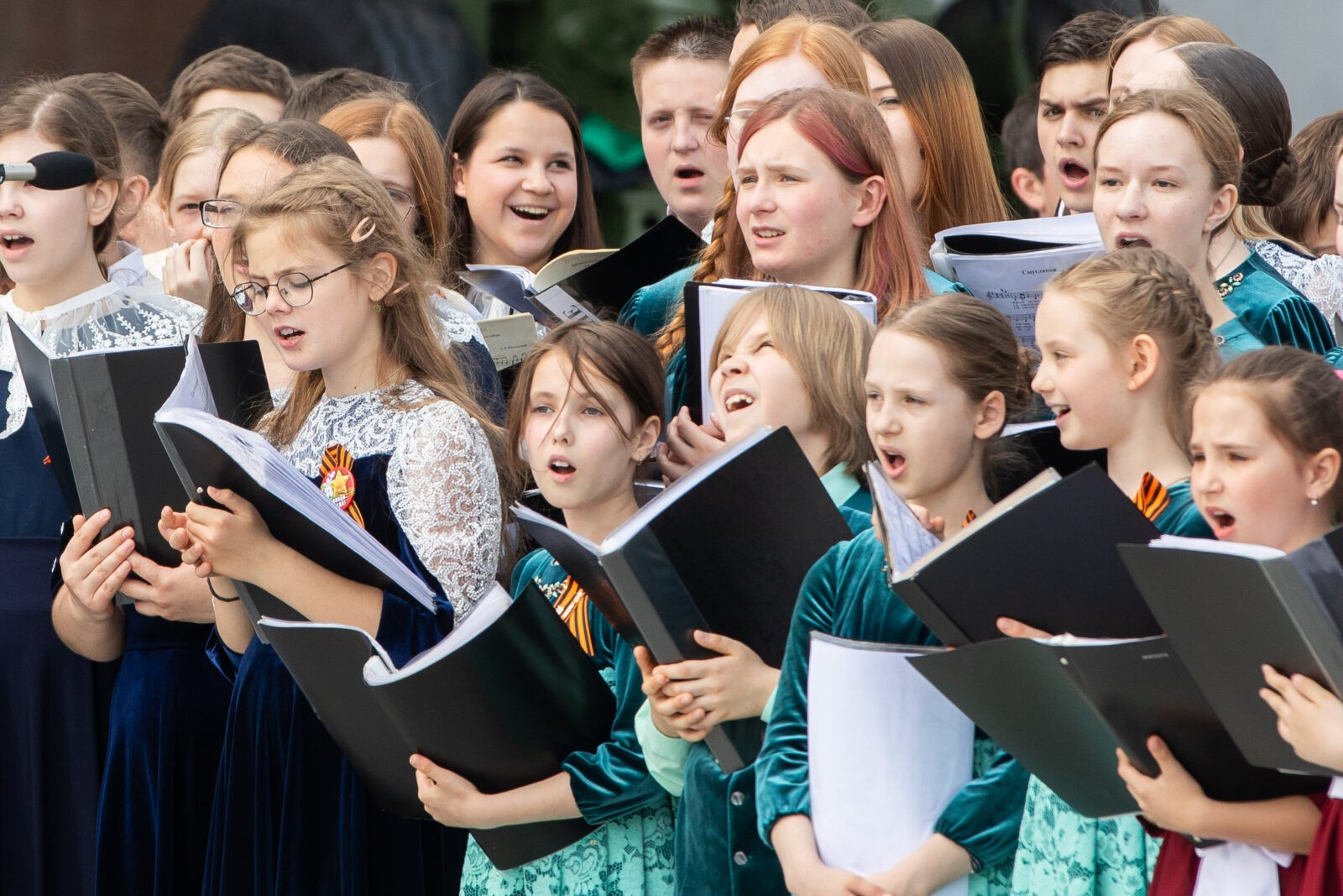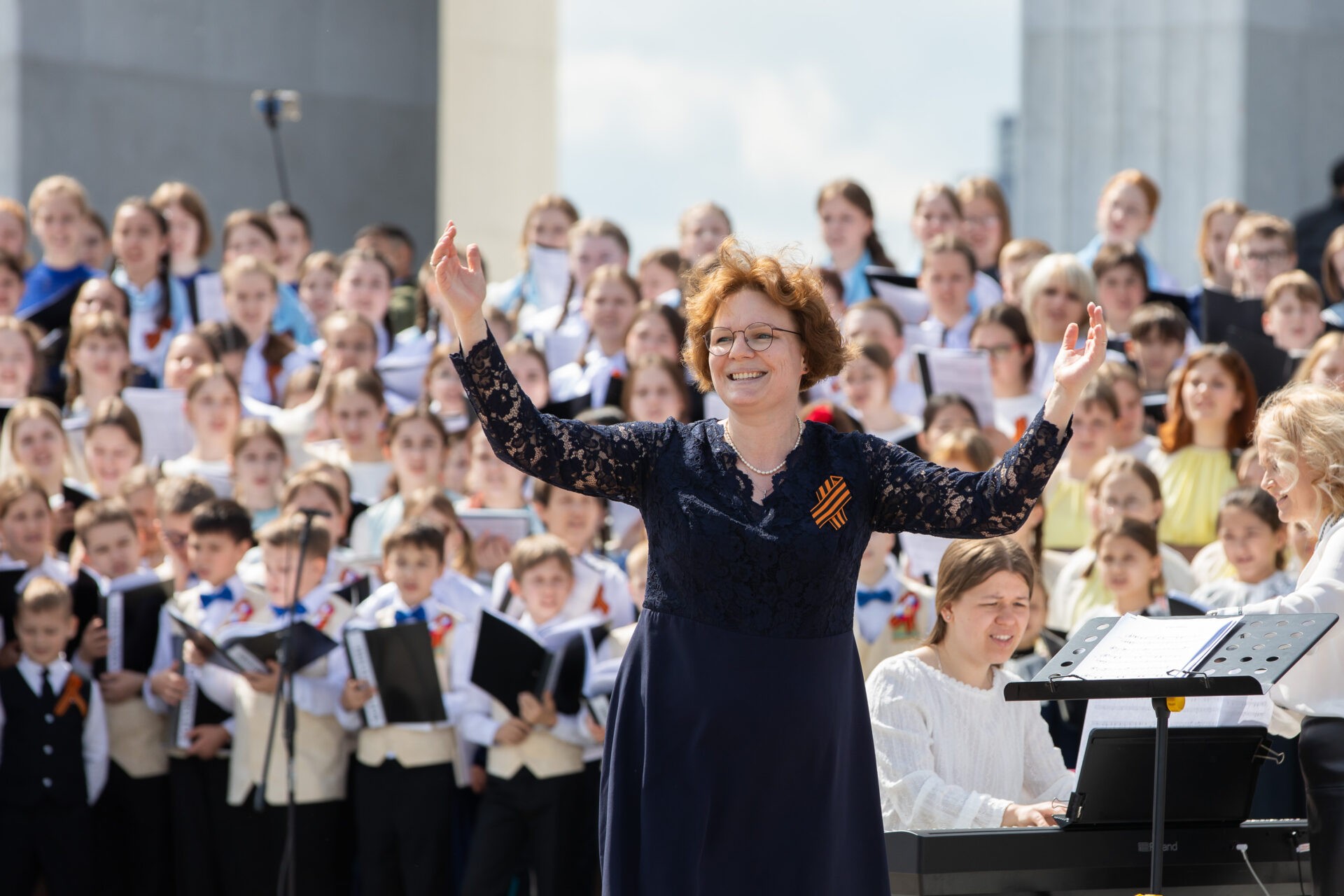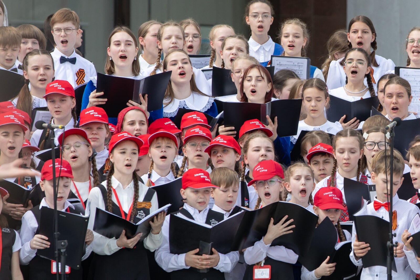 Концерт Всероссийского детского Победного хора прошел возле главного входа в Музей Победы. Свое мастерство показали свыше 700 детей из 30 регионов России и Республики Беларусь.
