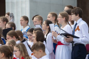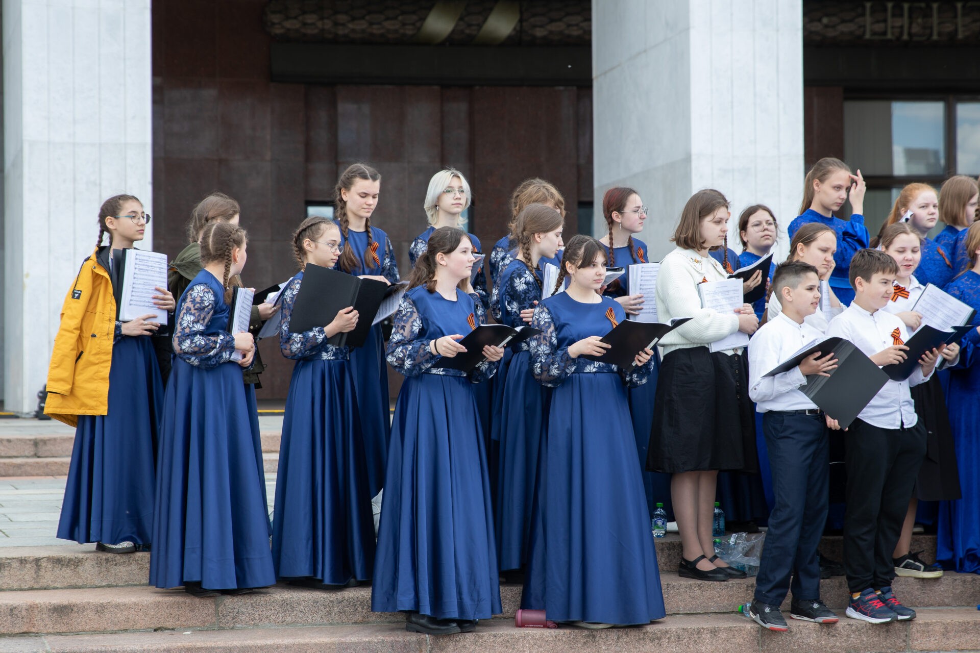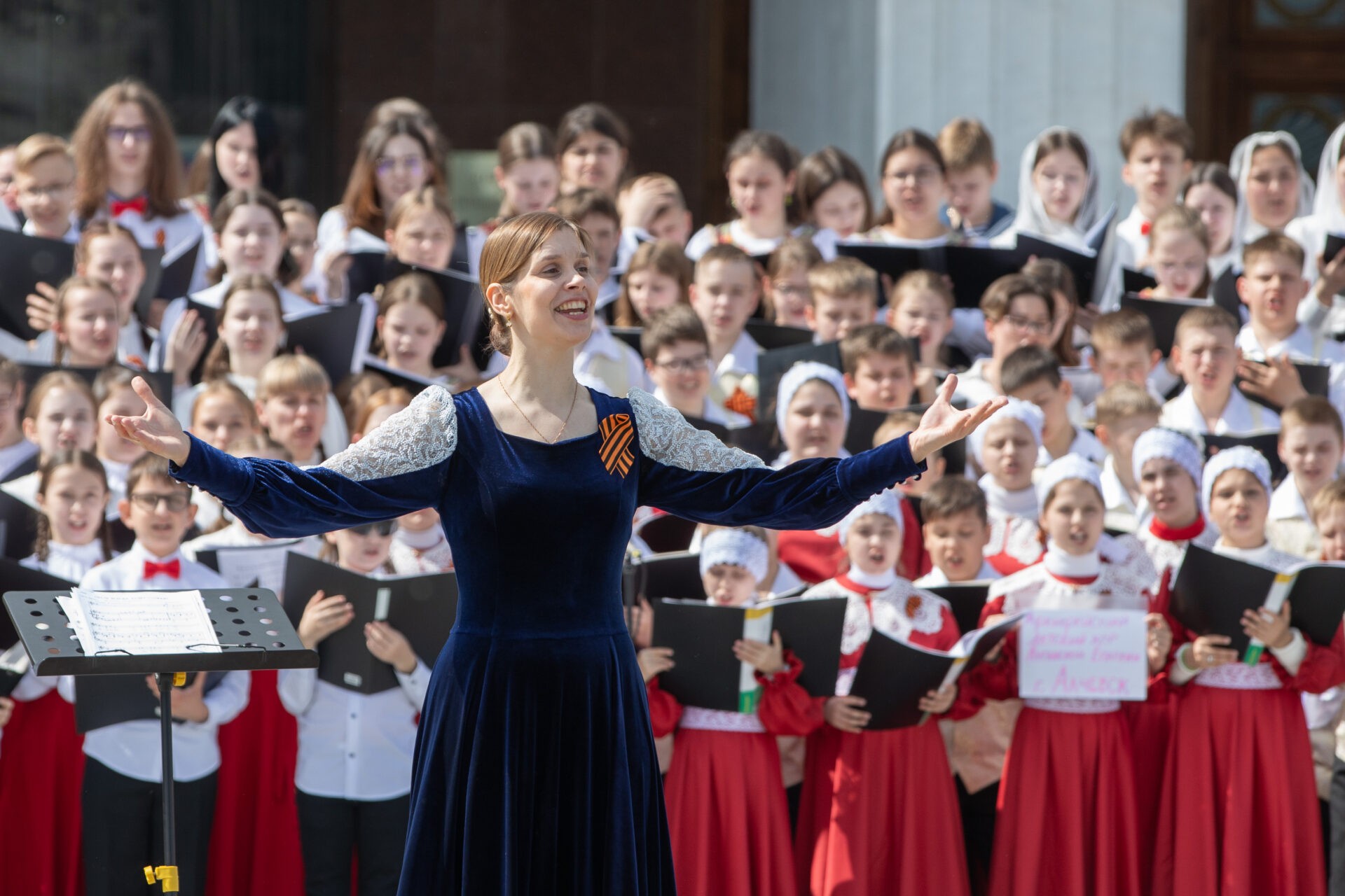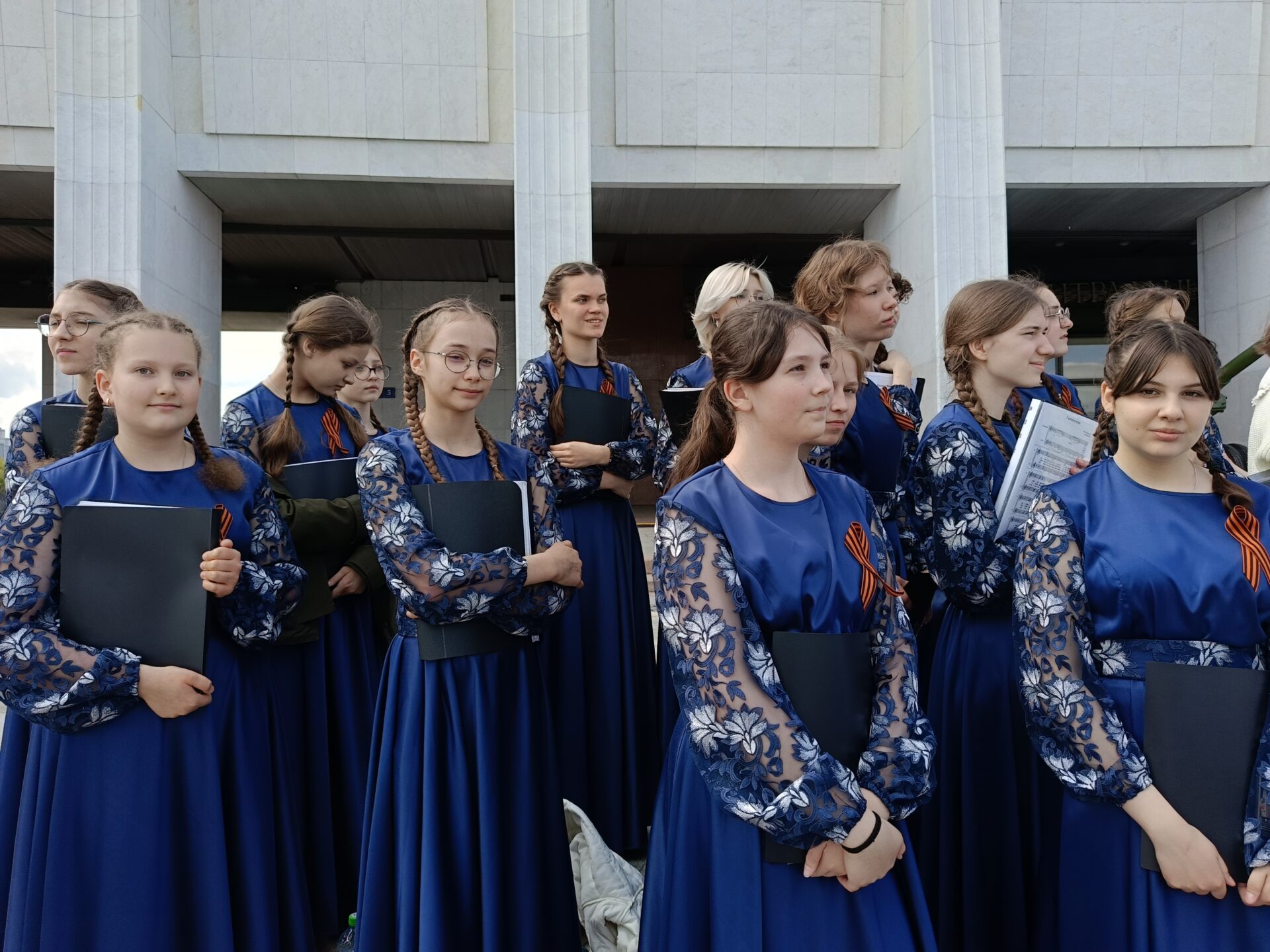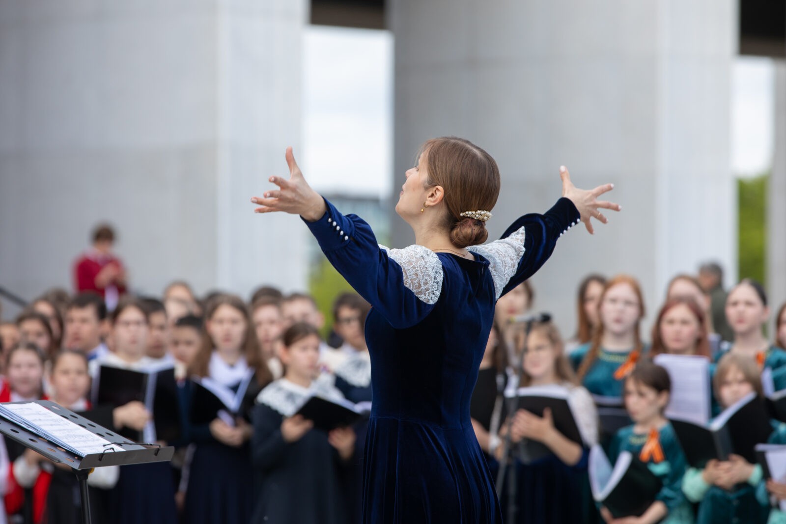Концерт Всероссийского детского Победного хора прошел возле главного входа в Музей Победы. Свое мастерство показали свыше 700 детей из 30 регионов России и Республики Беларусь.