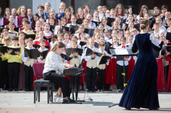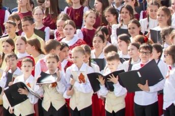 «Особенности, конечно, есть, поскольку очень сложно услышать детей с разных уголков нашего выстроенного хора, поскольку нас действительно очень много, и поэтому какая-то часть хора бежит вперед в какой-то момент, в какой-то момент отстает, это нормально. Очень талантливые руководители нашего хора сумели уладить и устранить этот недостаток. Из исполненных песен больше всего мне нравится «Смуглянка». Знаю ее с детства. Она задорная, отражает, как по мне, русский характер, настоящего русского человека», — считает участница епархиального детского хора при Успенском кафедральном соборе (Владимирская область) Мария Соловьева.