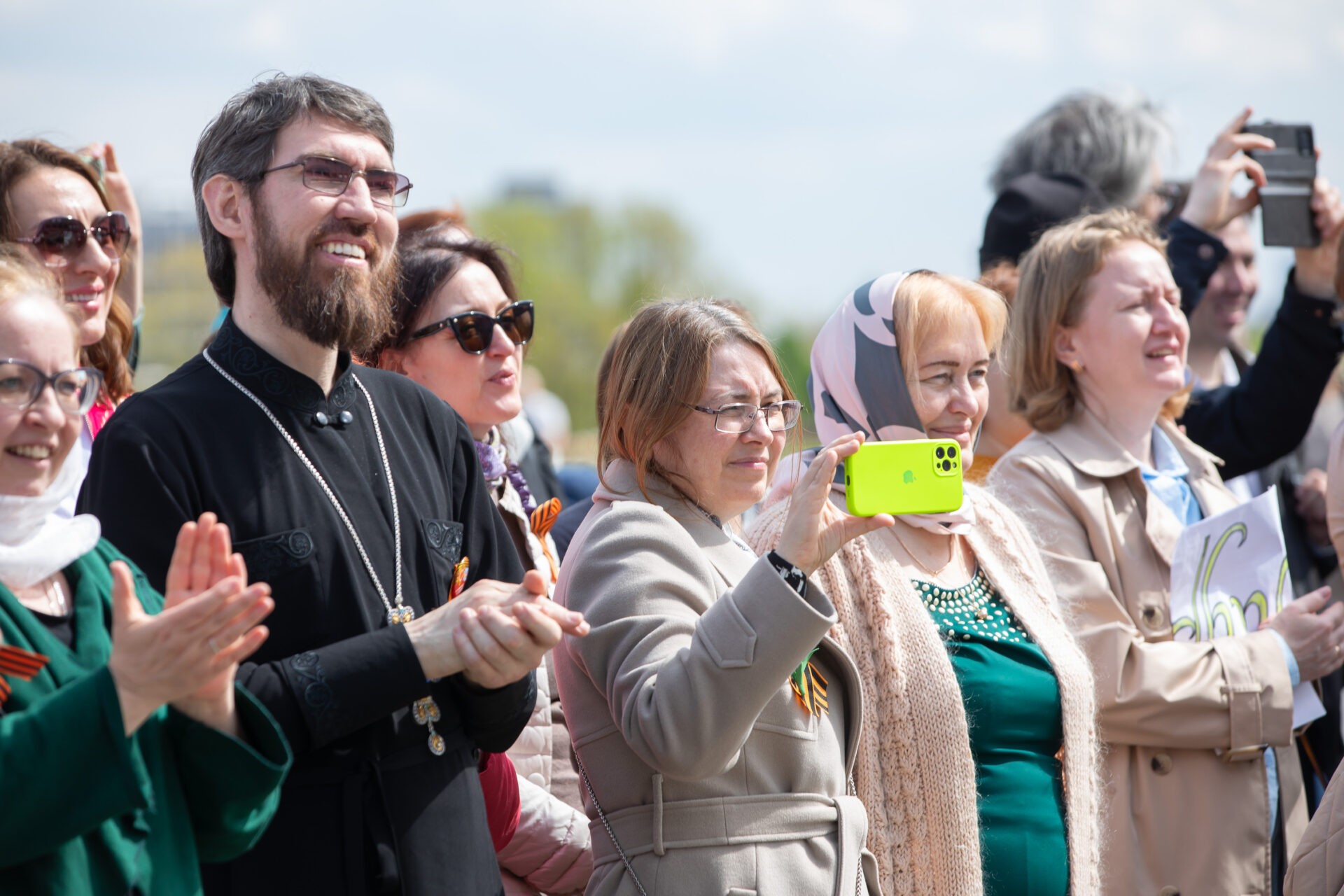 Всероссийский Победный хор исполнил патриотические произведения о Великой Отечественной войне и любви к Родине. В их числе «Солнечный круг», «Широка страна моя родная», «Баллада о солдате», «Эх, дороги», «Смуглянка», «Россия Россией останется» и «День Победы».