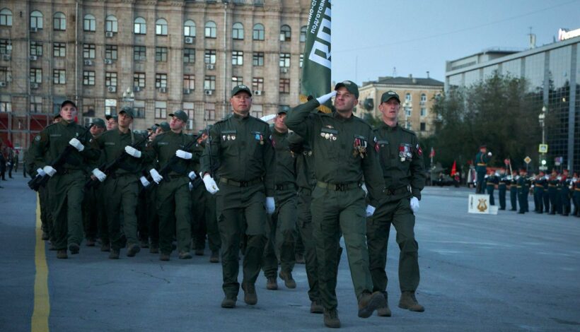 Первые репетиции начались еще в январе. Финальные подготовительные проходы состоятся накануне Дня Победы, сообщает пресс-служба Центра «Воин».
