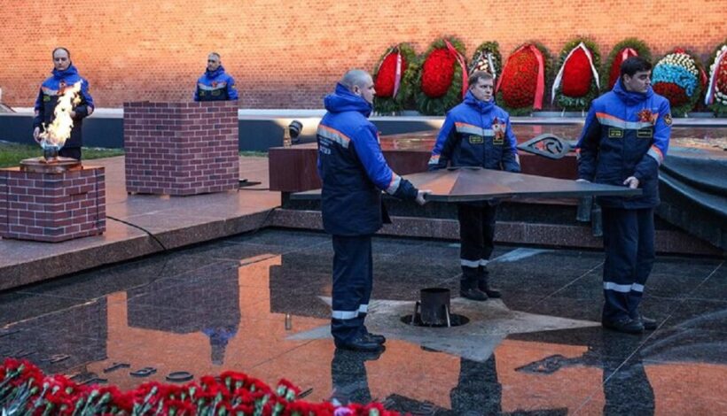 На Могиле Неизвестного Солдата в Александровском саду провели предпраздничную профилактику Вечного огня. Об этом рассказал мэр Москвы Сергей Собянин.