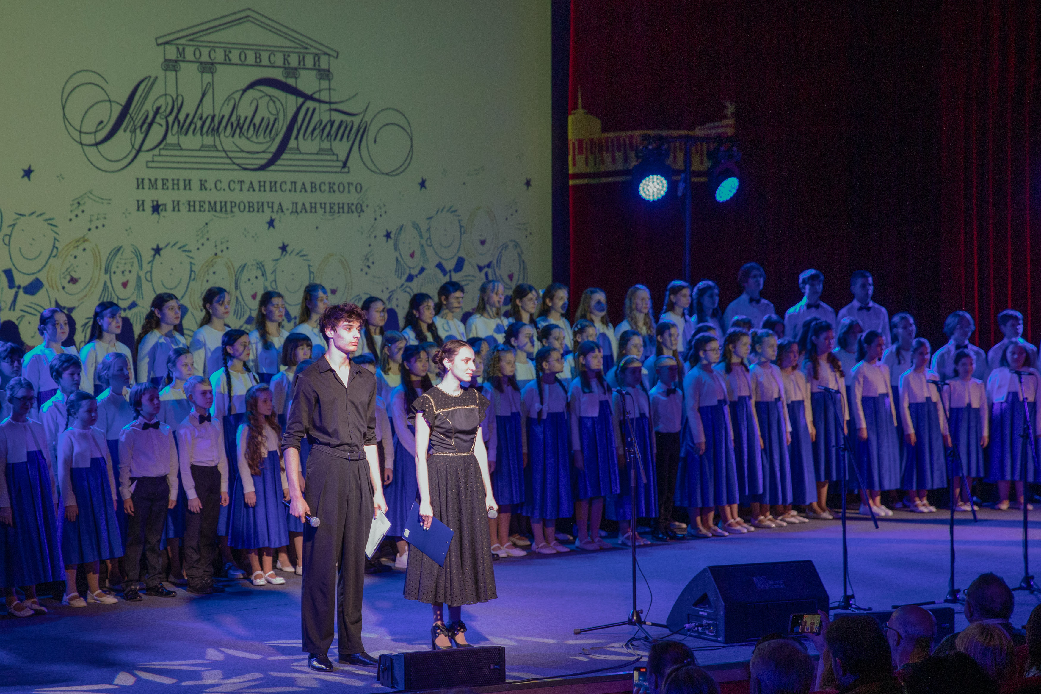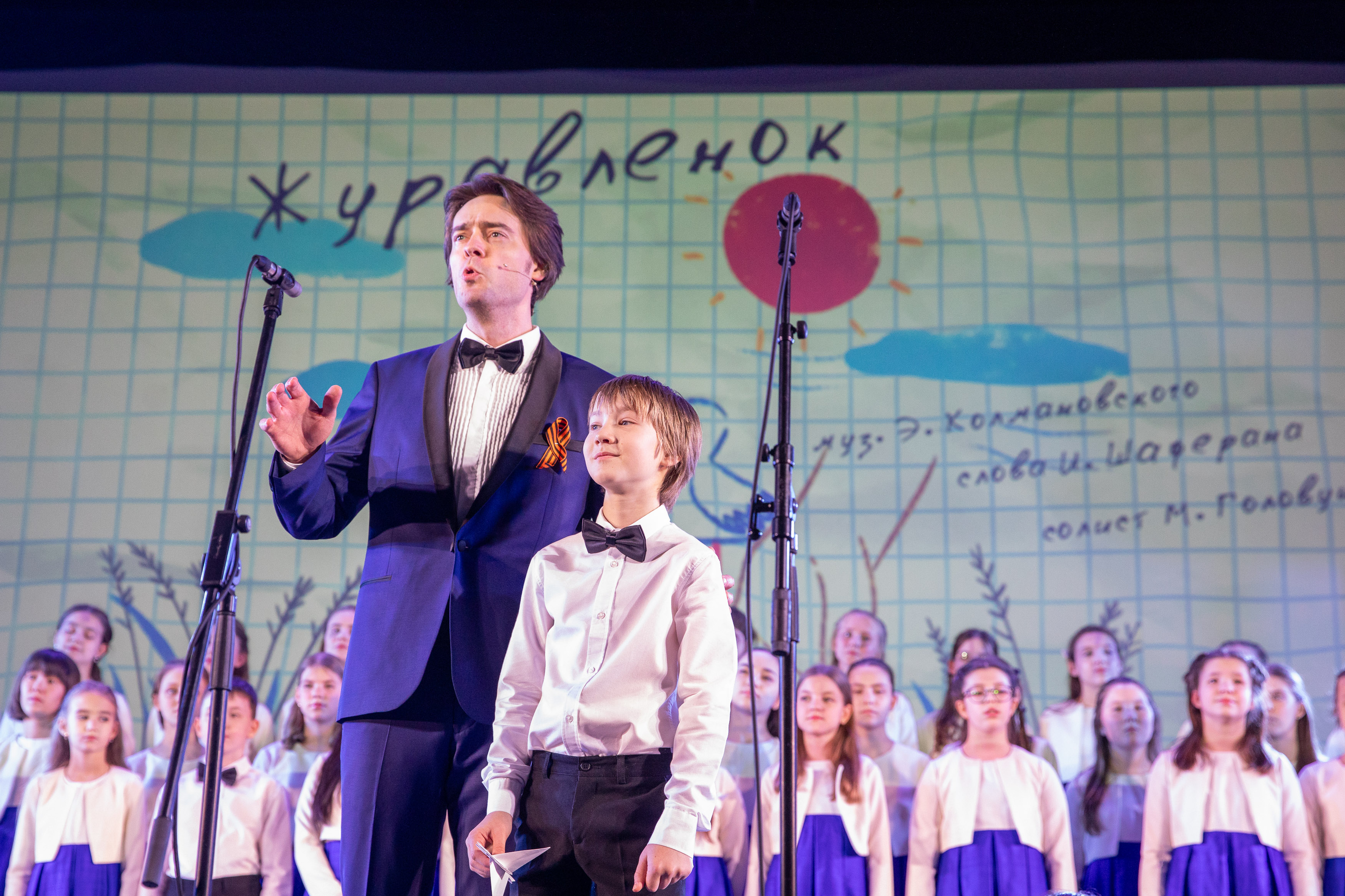 «Театр имени Станиславского и Немировича-Данченко в лице дирекции театра, в лице художественного руководителя, руководителя детского хора и артисты подготовили этот праздничный концерт. Он называется «О, если б голос мой умел сердца тревожить», — сказал, обращаясь к зрителям, режиссер театра имени Станиславского и Немировича-Данченко Илья Можайский.