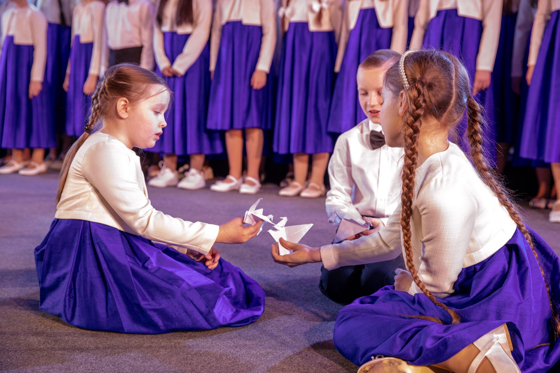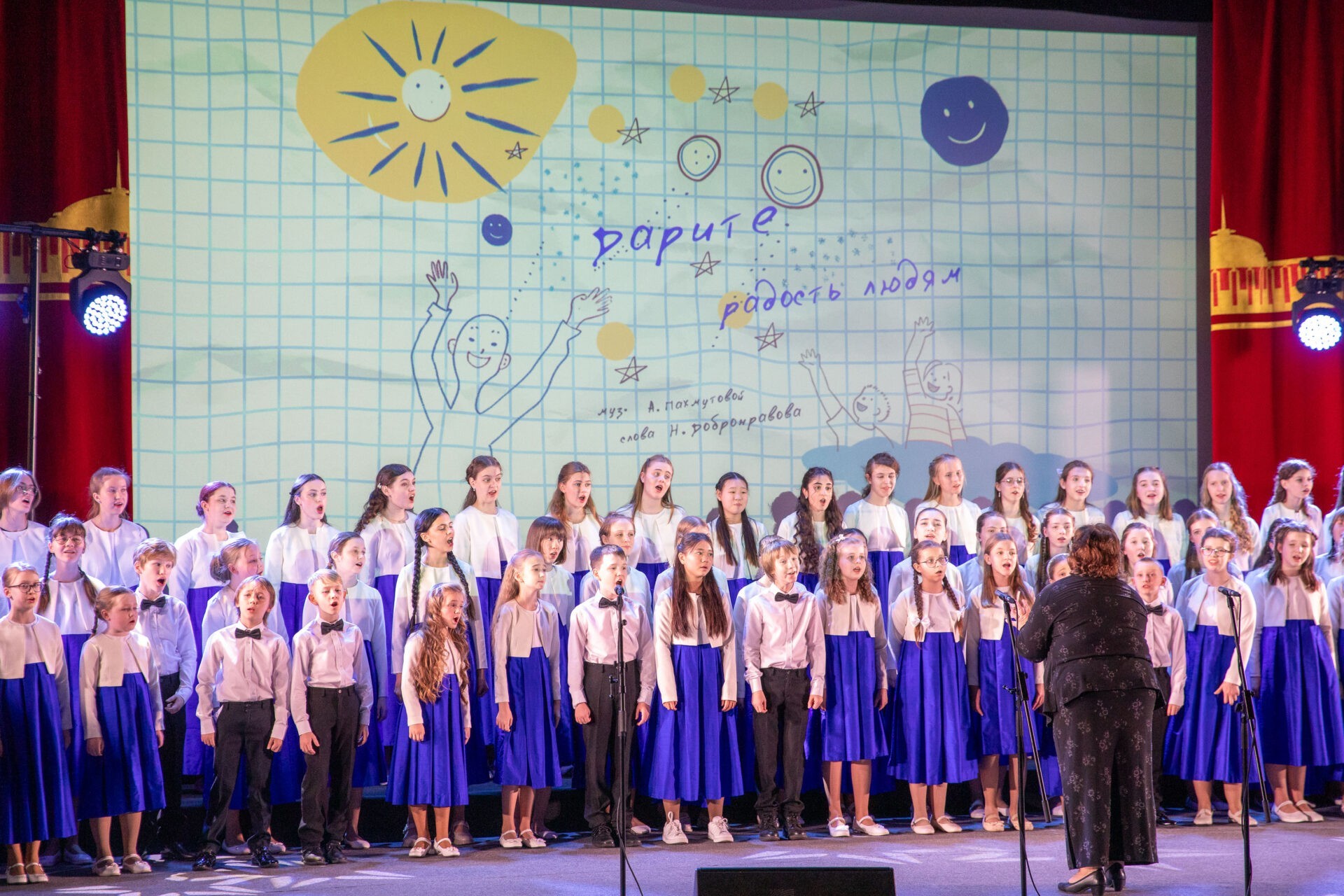 Детский хор исполнил песни военных лет, а также композиции о Родине и дружбе.
