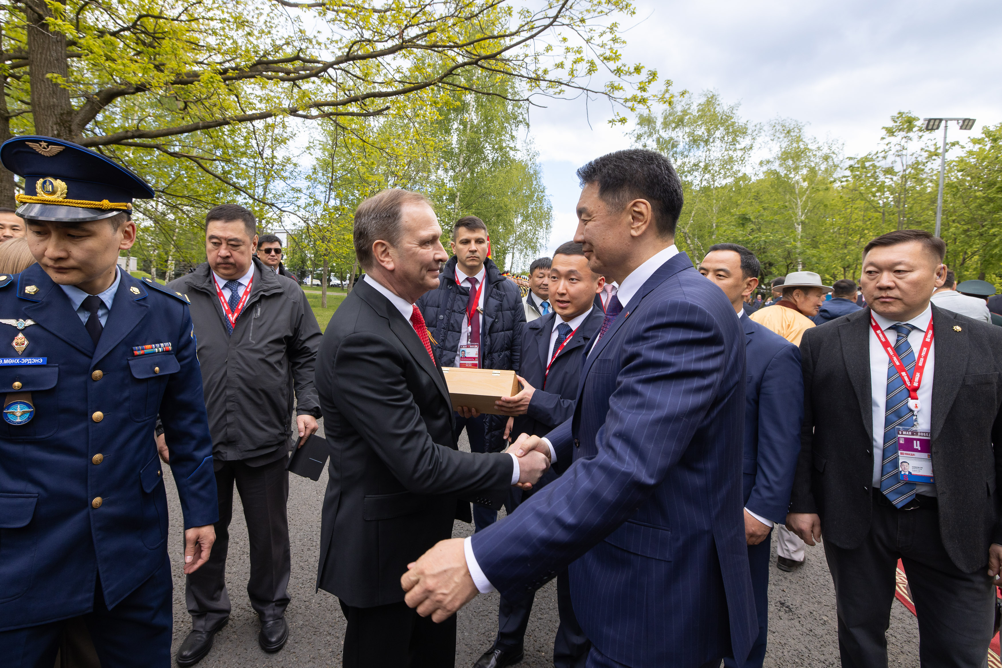 В церемонии возложения цветов к мемориалу с Президентом Монголии также приняли участие министр природных ресурсов и экологии Российской Федерации Александр Козлов и генеральный директор Музея Победы, заместитель секретаря Общественной палаты РФ Александр Школьник.