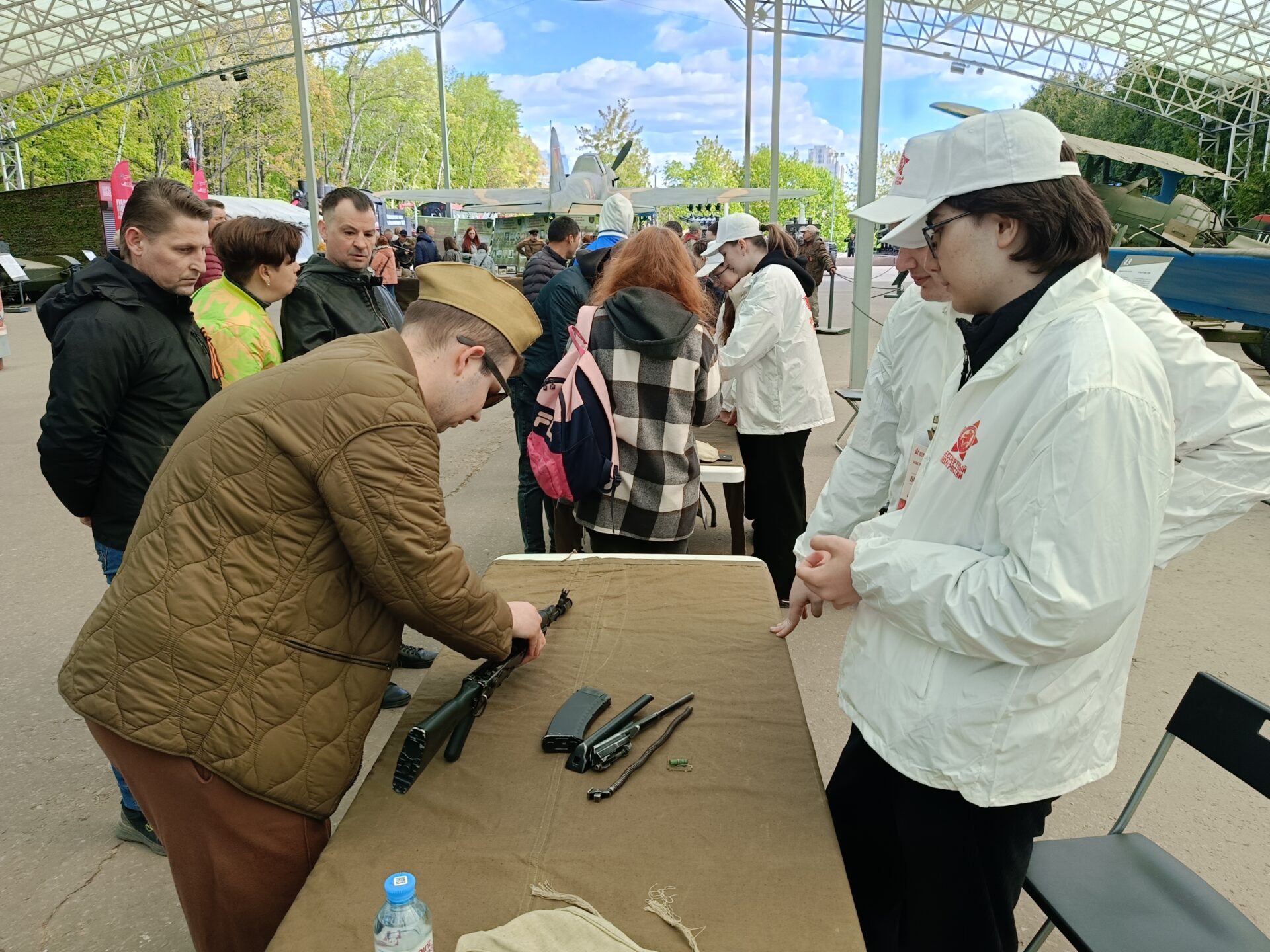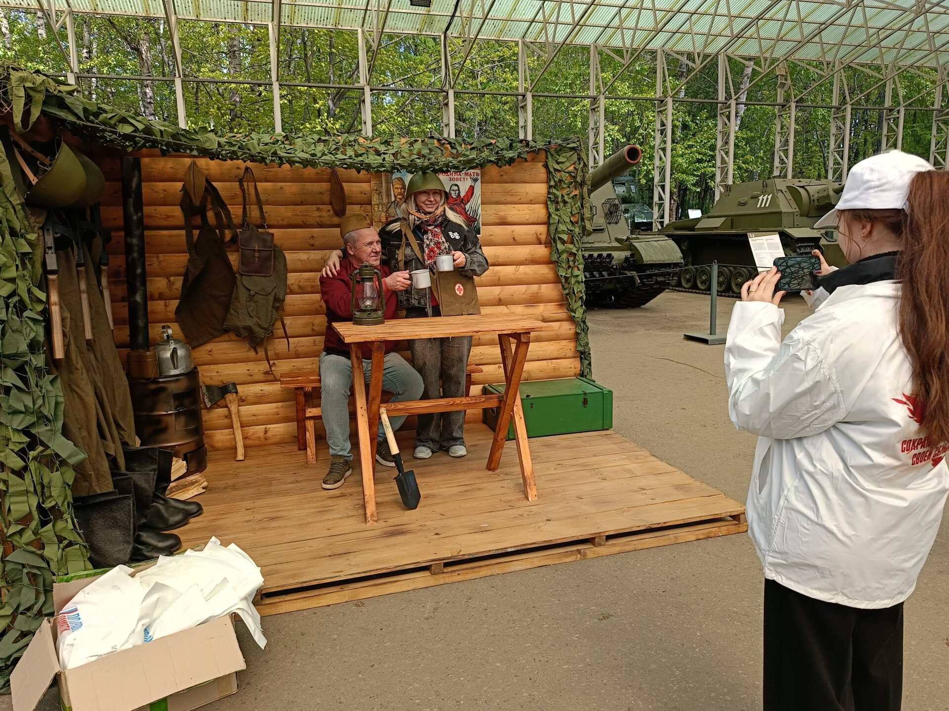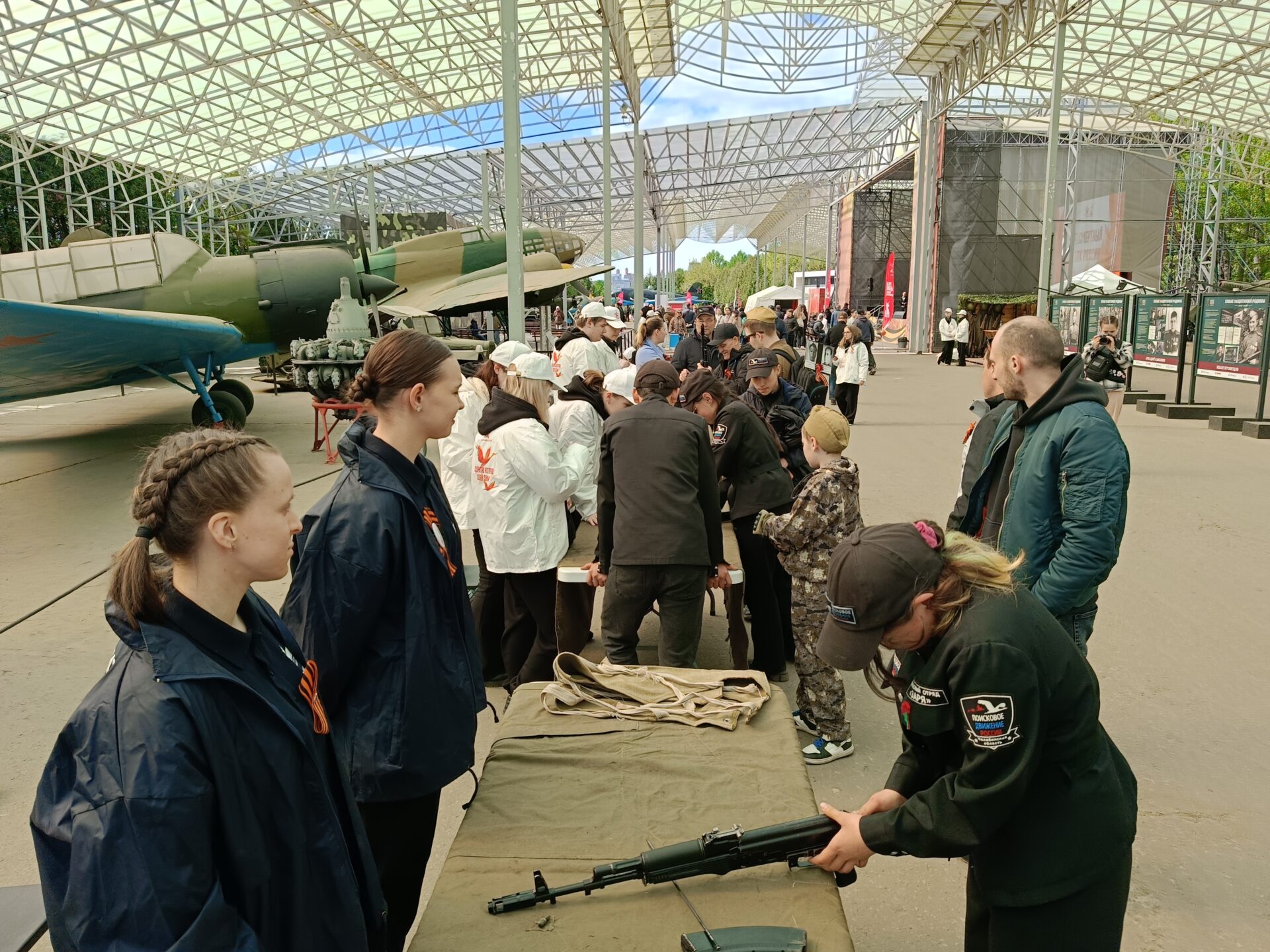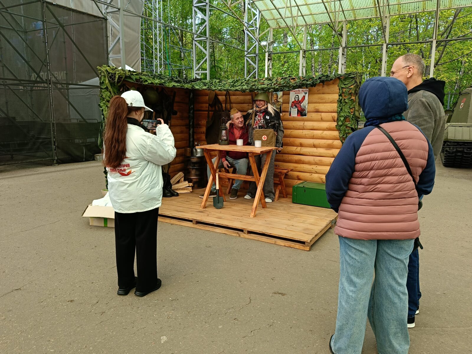 Для посетителей организовали разнообразные мастер-классы и тематическую фотозону «Бессмертного полка России», на которой можно примерить форму солдата Красной Армии. Желающие потренируются в разборке-сборке макета учебного автомата АК-74 и попробуют настоящую фронтовую кашу на полевой кухне.
