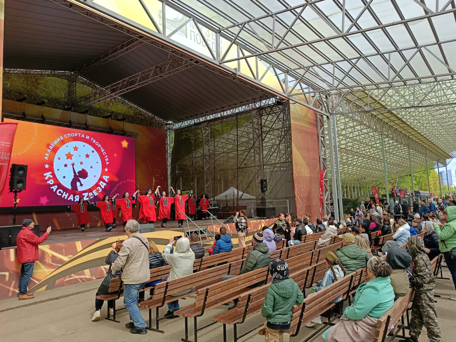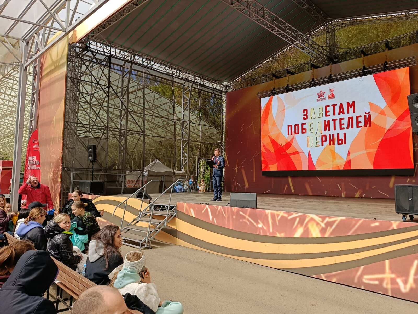 С 10 утра посетители могли посмотреть прямую трансляцию парада Победы на Красной площади в Москве. Праздничную концертную программу днем организовало Общероссийское общественное гражданско-патриотическое движение «Бессмертный полк России». Открыли концерт творческие коллективы Академия спорта и творчества «Красная звезда», хореографические студии «Наследие» и «Виртуоз», Театр танца «Вариация», сводный хор и музыкальный театр «Тутти-Фрутти». Также на главной сцене свои мастерство и талант продемонстрировали лауреат международных конкурсов, руководитель школы барабанов, гитары и вокала Music Art Master Оксана Биленькая, исполнитель патриотических песен Бахром Бабаджанов (Узбекистан), ветеран Президентского полка, композитор и участник группы «Оптимисты» Илья Брылин. Продолжили концерт победители творческих конкурсов, организованных ООД «Бессмертный полк России», группы «ГромЪ» и «Уч-Кудук».