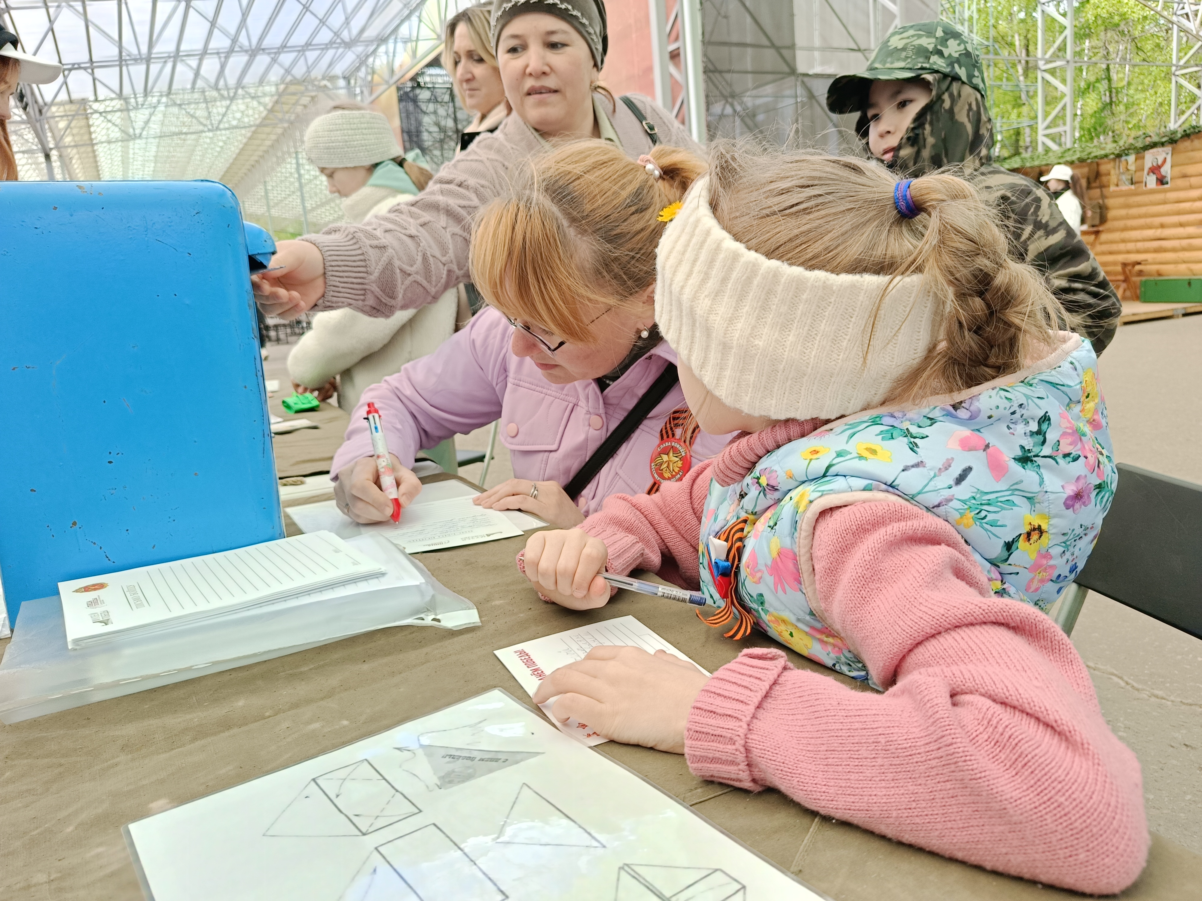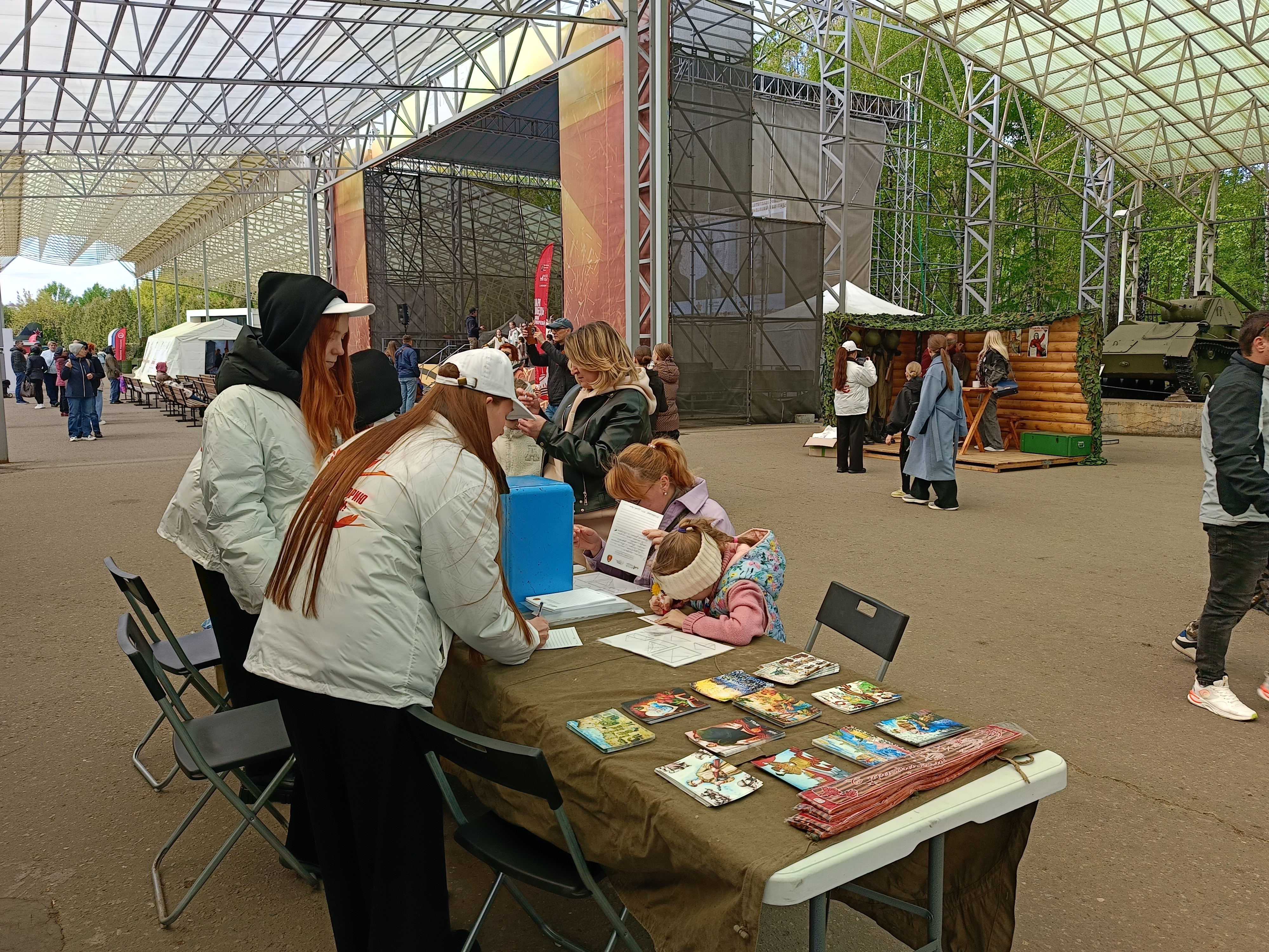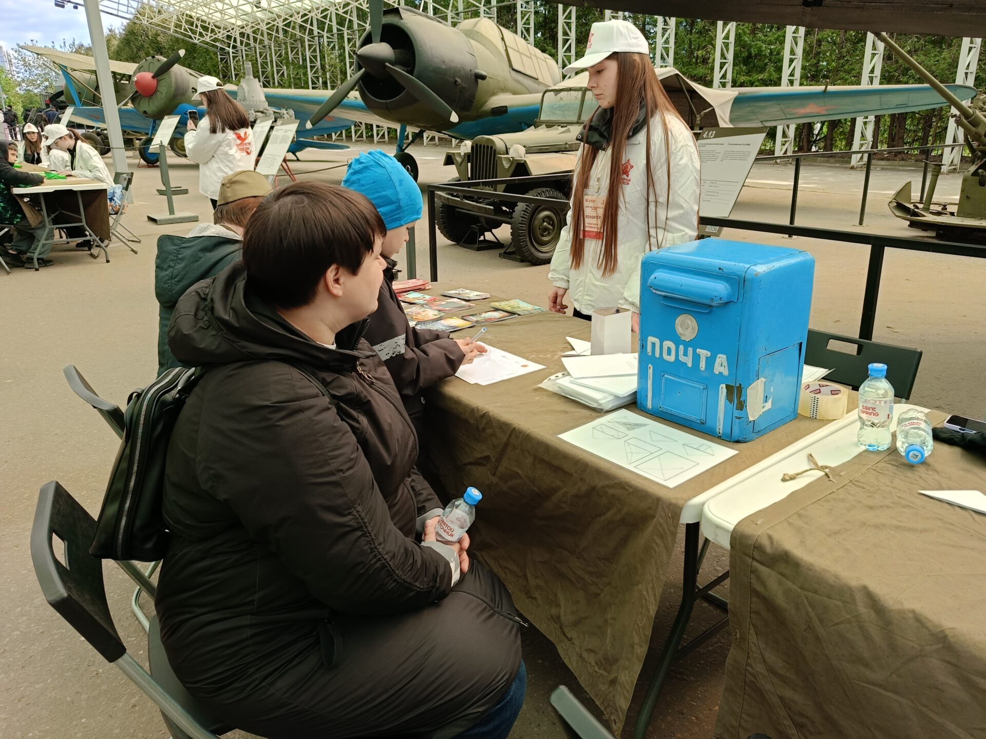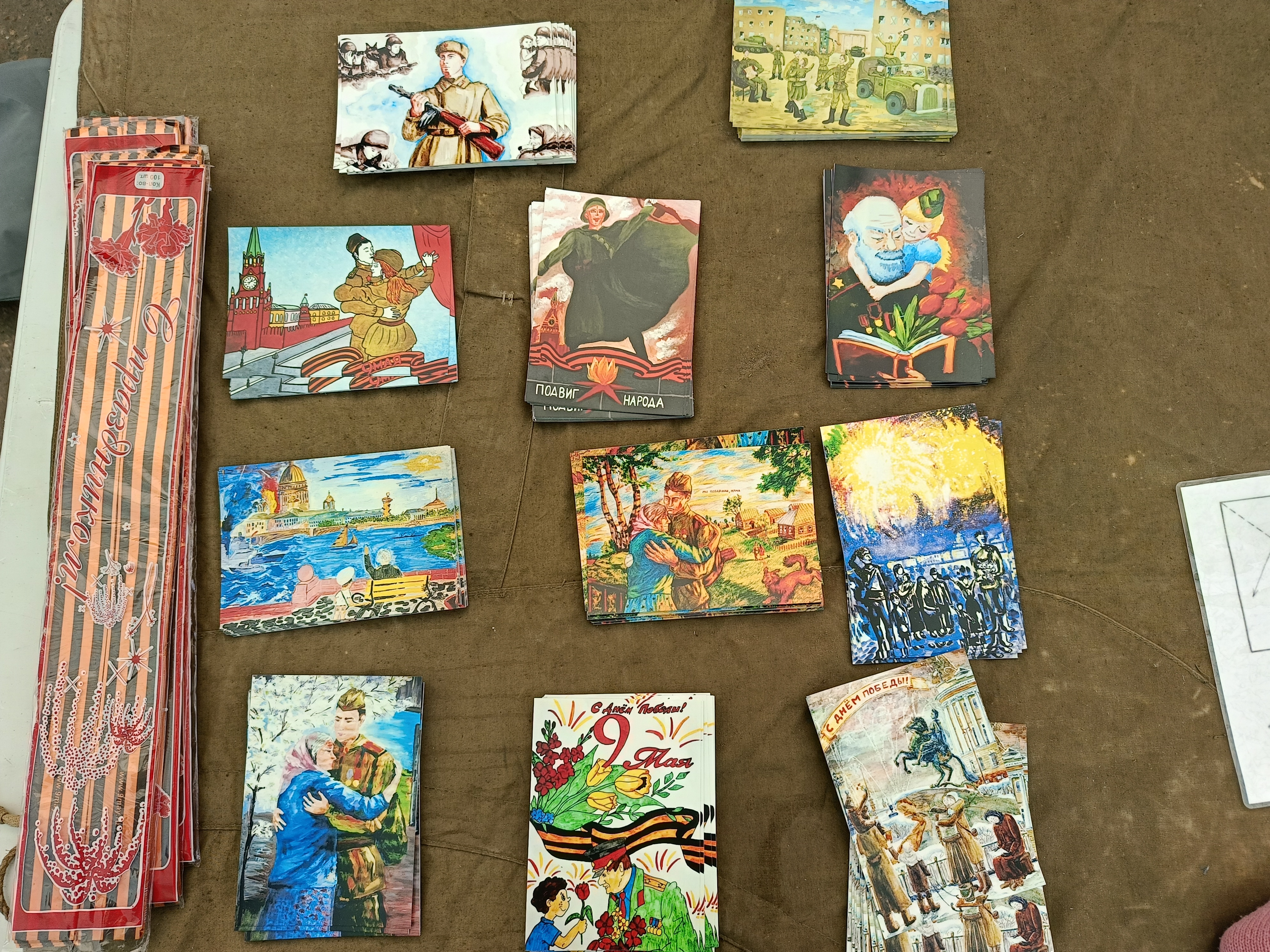 «Сегодня в честь праздника у нас выдают открытки на СВО, также лежат бланки для писем. Послания отправляют бойцам, а открытки можно забрать с собой и поздравить с 9 Мая своих родных и близких», — сообщила волонтер Музея Победы Ольга Кропочева.