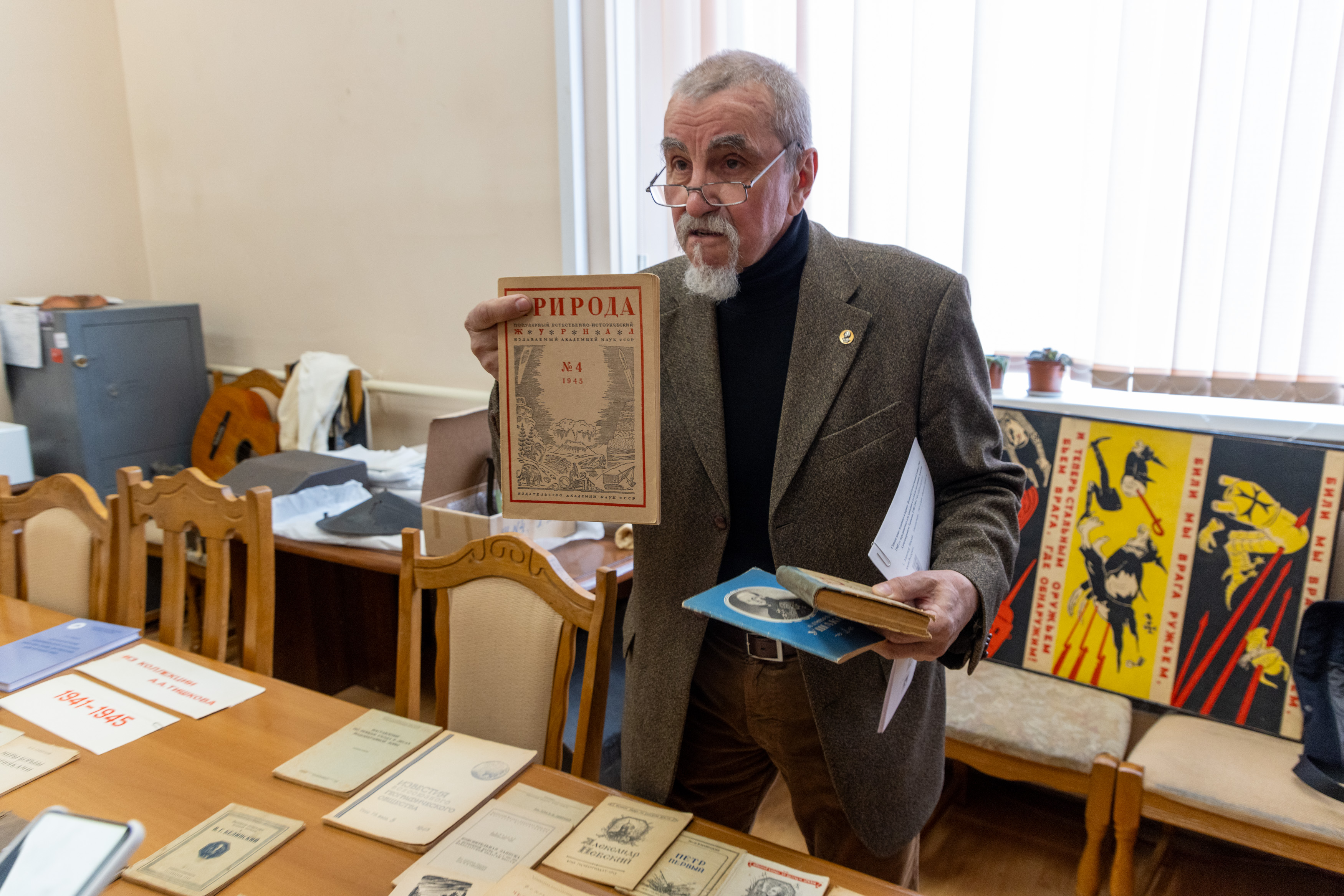 Фонды Музея Победы пополнились редкими изданиями 1940-х годов. Более 50 книг передал в дар коллекционер, заведующий лабораторией биогеографии Института географии РАН, член-корреспондент РАН Аркадий Тишков.