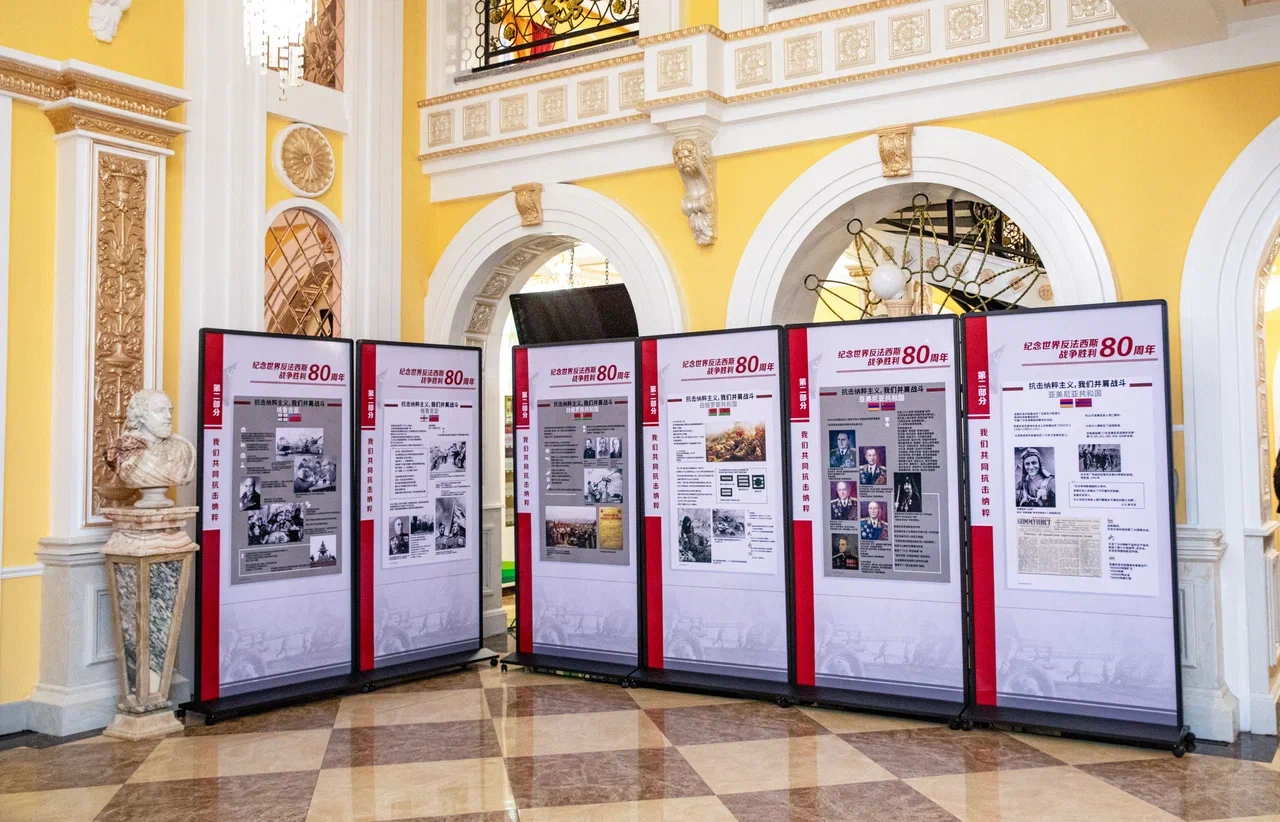 Экспозицию Музея Победы «В борьбе против нацизма мы были вместе» представили иностранным посетителям во время торжественного приема, устроенного Генконсульством РФ в Харбине (КНР) 9 мая 2025 года.
