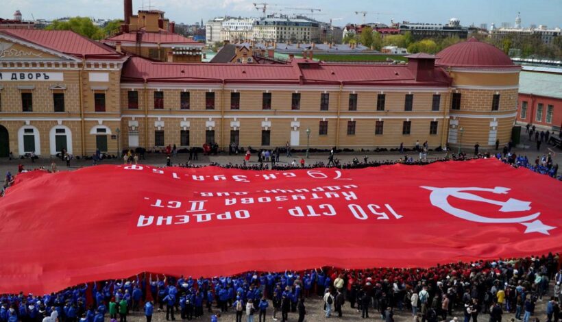 Самое большое в мире Знамя Победы развернули на территории Петропавловской крепости в Санкт-Петербурге. Акцию провели в рамках патриотической экспедиции «Непокоренные», приуроченной к 80-летию Победы и объединившей 14 городов России и Белоруссии.
