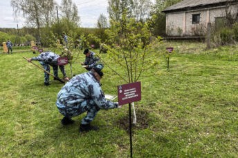 Сотрудники московского ОМОН почтили боевых товарищей в Саду памяти на территории храма Архангела Михаила в деревне Головино Владимирской области.
