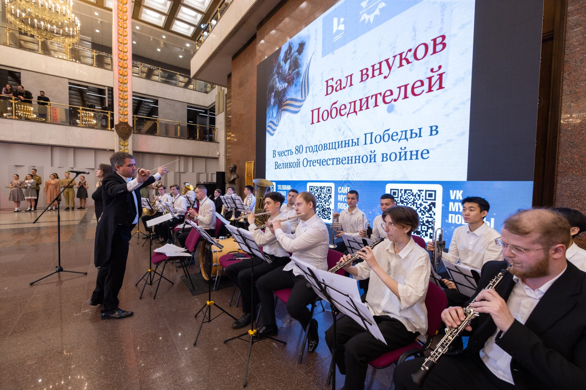 Также с концертом «Бал внуков Победителей» выступил духовой оркестр института «Академия имени Маймонида» и студенческий ансамбль «Лаборатория танца» РГУ имени А. Н. Косыгина. В программе прозвучали произведения «Танец с кубками» Петра Чайковского, «Севастопольский вальс», «Катюша», «Гляжу в озера синие» и не только.