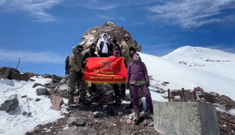 Юнармейцы Тюменской области совершили восхождение на самую высокую гору России Эльбрус и развернули Знамя Героев на высоте 4700 метров.