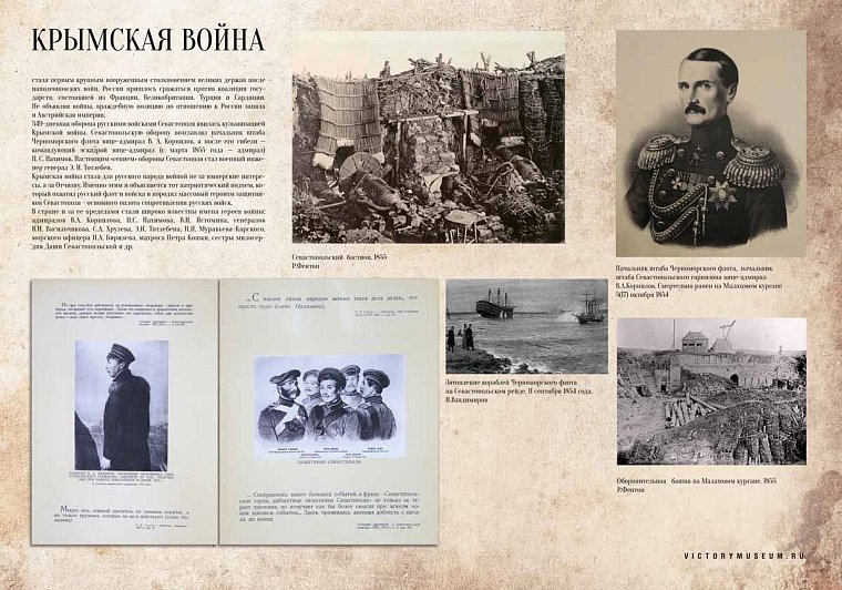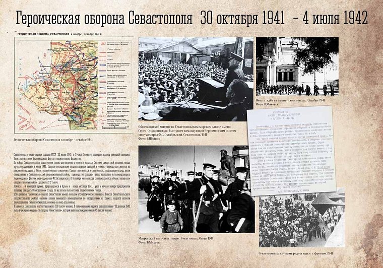 «Выставка «Севастополь — город русской славы» расскажет о героической 349-дневной обороне базы Черноморского флота в Крымской войне, а также о героической обороне Севастополя с 30 октября 1941 по 4 июля 1942 года. Выставка «Летопись войны» передает основную тональность военной эпохи — патриотическую, оптимистическую, лирическую, несмотря на трагизм, тяготы и невзгоды», — отметили в Музее Победы.