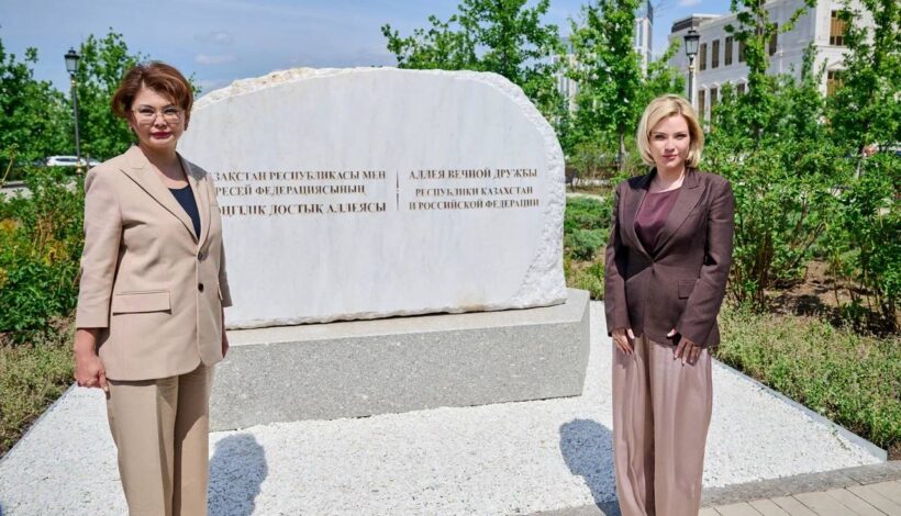 Министр культуры России Ольга Любимова и министр культуры и информации Республики Казахстан Аида Балаева открыли Аллею вечной дружбы двух стран в центре Астаны. Церемонию приурочили к 80-летию Победы.