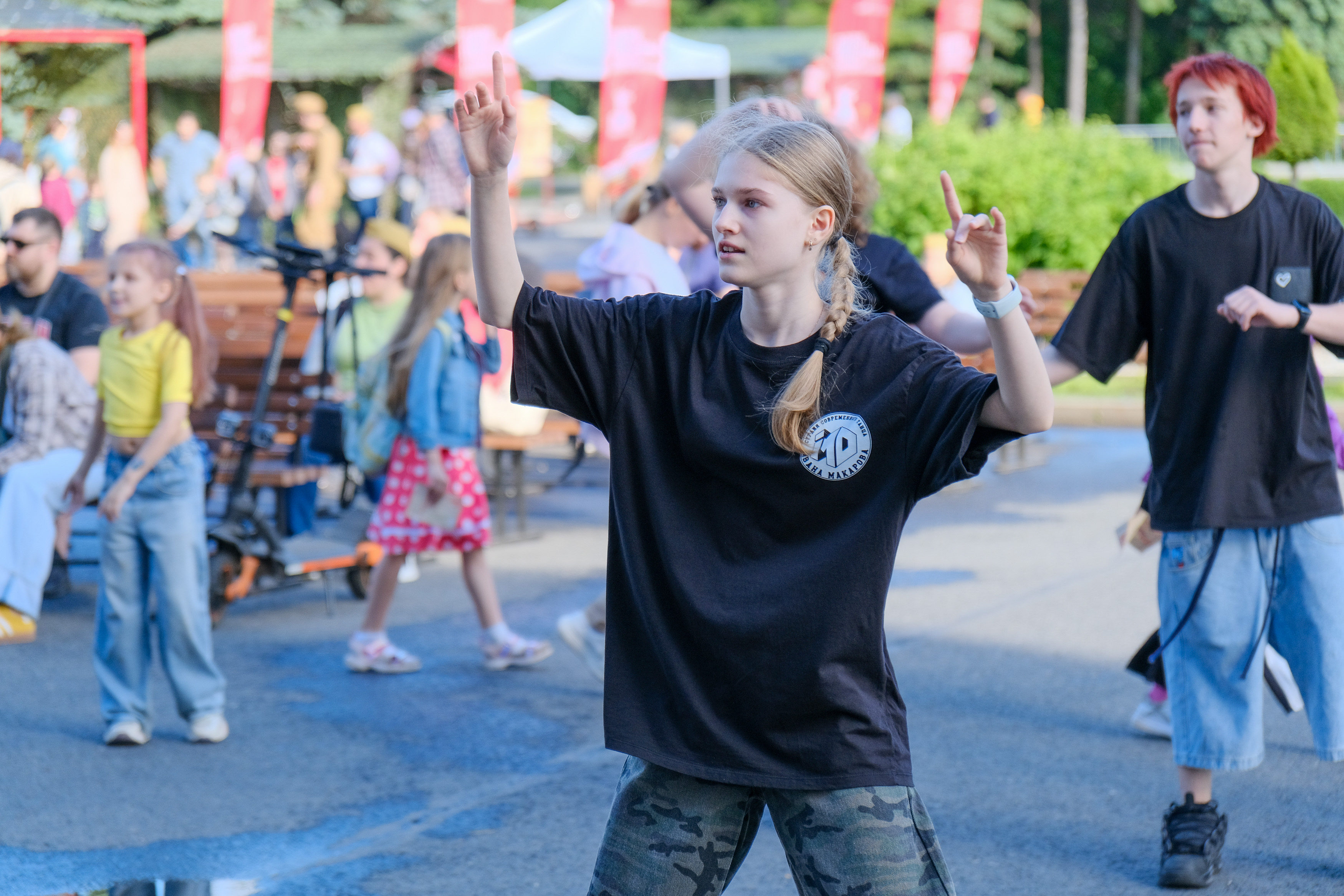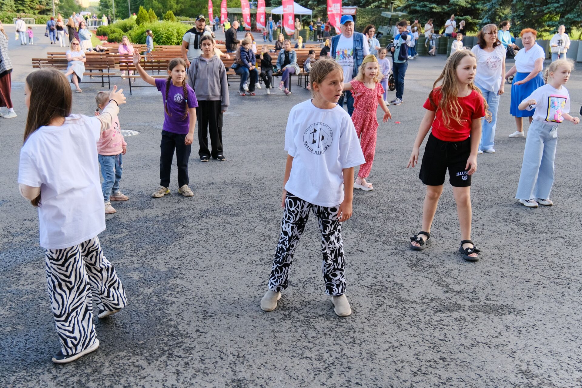Ярким завершением праздничной программы стал флешмоб детских рисунков на асфальте «Краски Победы». Участники украсили рисунками территорию парка.