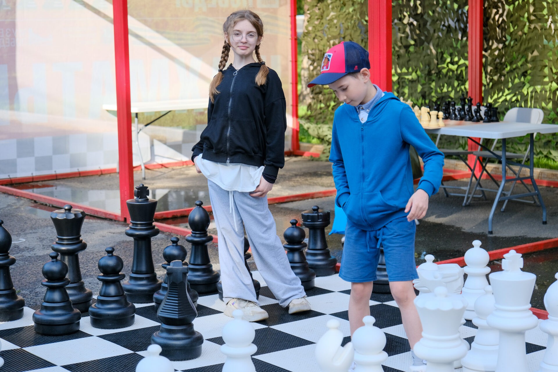 В Парке Победы ребята смогут сыграть в гигантские шахматы, городки и настольные игры, а также всей семьей посоревноваться в спортивной эстафете. На «Площади мастеров» можно было научиться шить на швейной машинке, попробовать самостоятельно отремонтировать обувь, выковать монеты, оказать первую помощь. Ребята также узнали об особенностях профессий спасателя и инструктора по туризму.