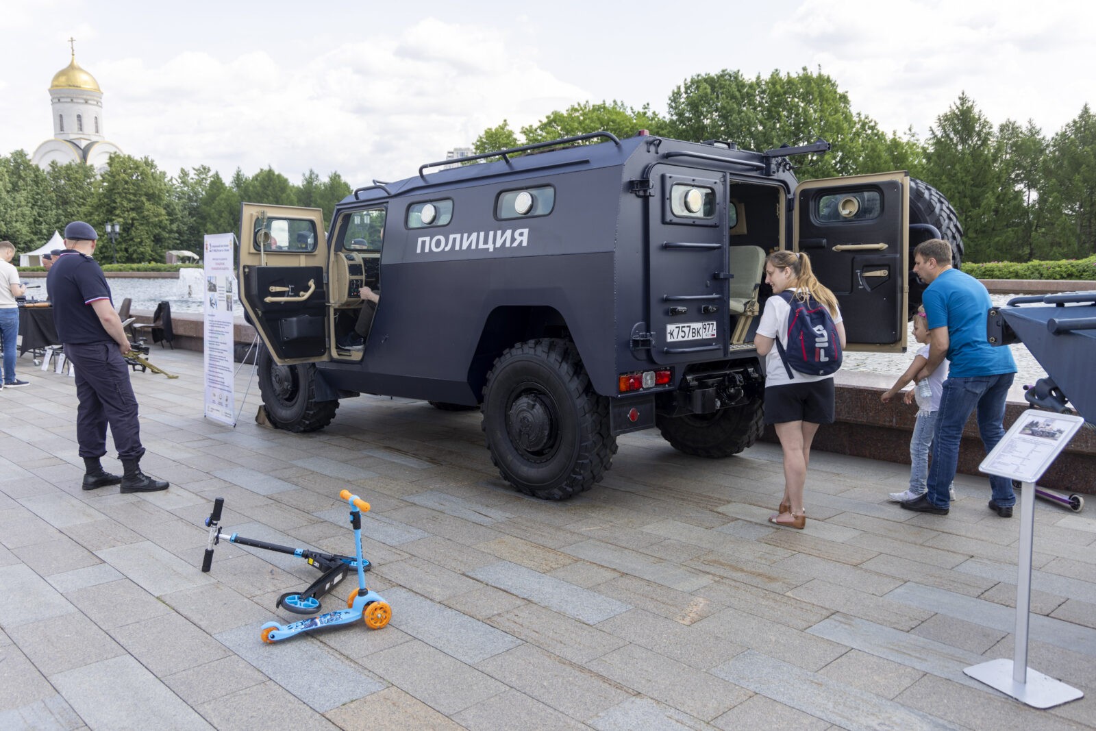 Выставка автомототехники, средств вооружения и защиты, подвижные игры, викторины и мастер-классы для детей, обучающие безопасному поведению на улицах, дорогах и в транспорте. Так на территории мемориального комплекса на Поклонной горе прошел «Один день с полицией России», организованный в рамках программы семейного отдыха «Парк Победы. Главный патриотический».