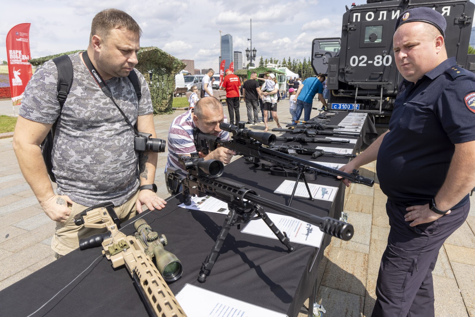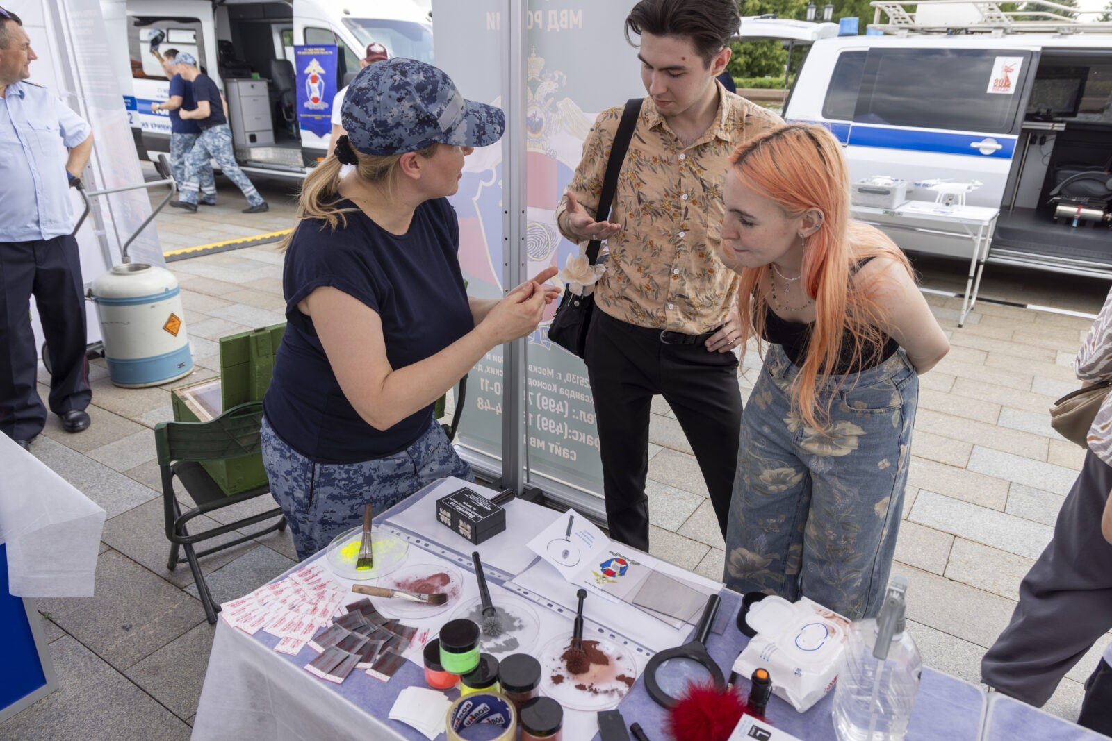 Гости парка смогли детально изучить представленную спецтехнику — от патрульного катера до бронетранспортера и бронированного автомобиля «Патруль». Посетителей также привлекла выставка оружия. Здесь можно было подержать в руках гранатометы, пулеметы и автомат Калашникова. Секреты своей работы раскрыли криминалисты, продемонстрировав, как находят отпечатки пальцев на месте преступления. А все заинтересовавшиеся службой в полиции тут же могли узнать о поступлении в ведомственные вузы. Посетители Парка Победы остались в восторге от тематической программы.