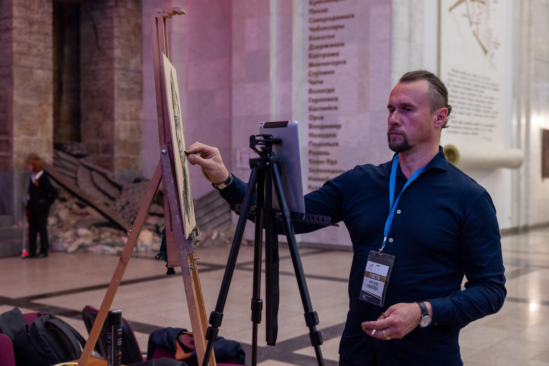 Член Московского союза художников и Творческого союза художников России Сергей Марченко провел тематический мастер-класс по рисованию углем. Мероприятие приурочено к выставке «Уголь Донбасса» и грядущему юбилею писателя и поэта Александра Твардовского.