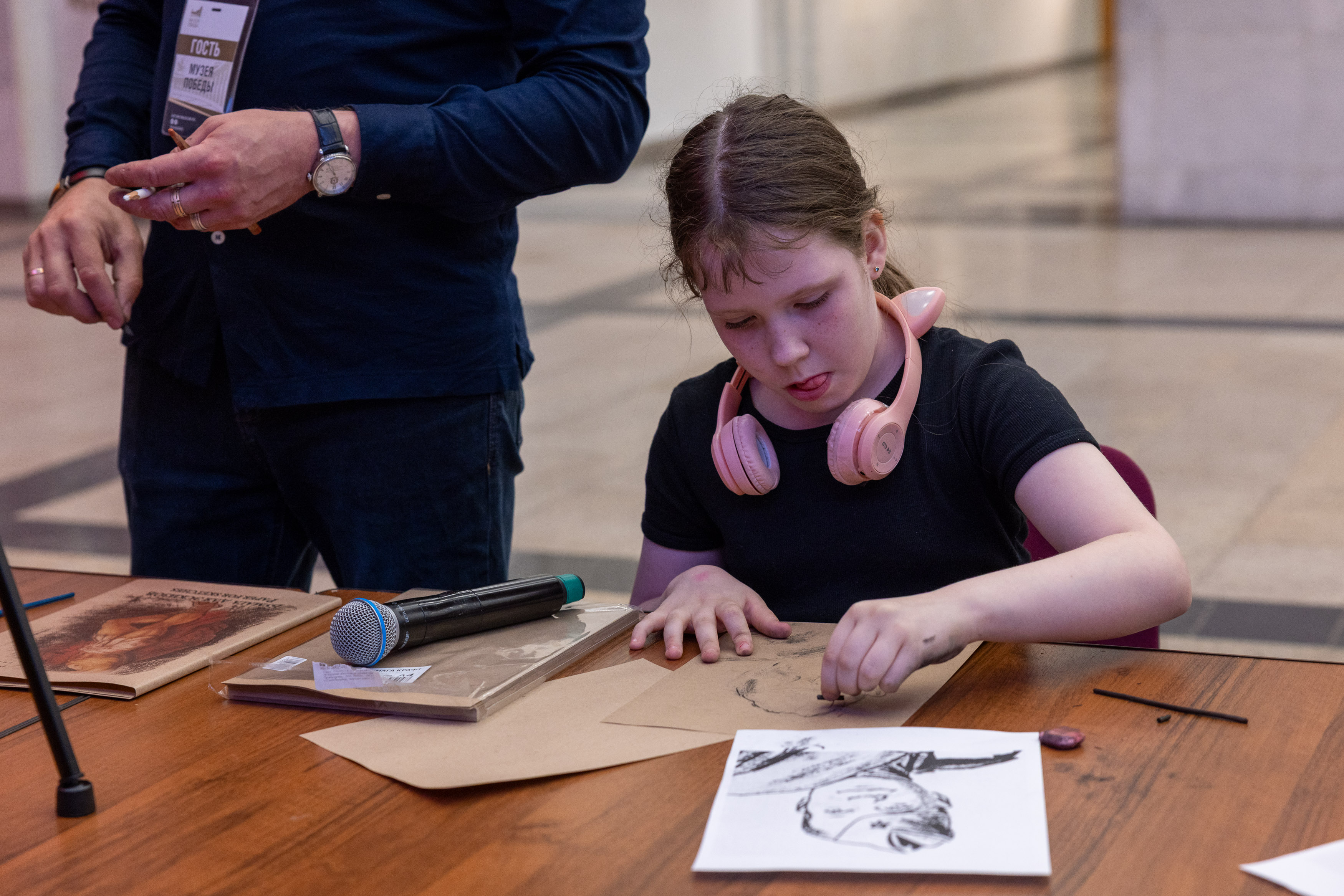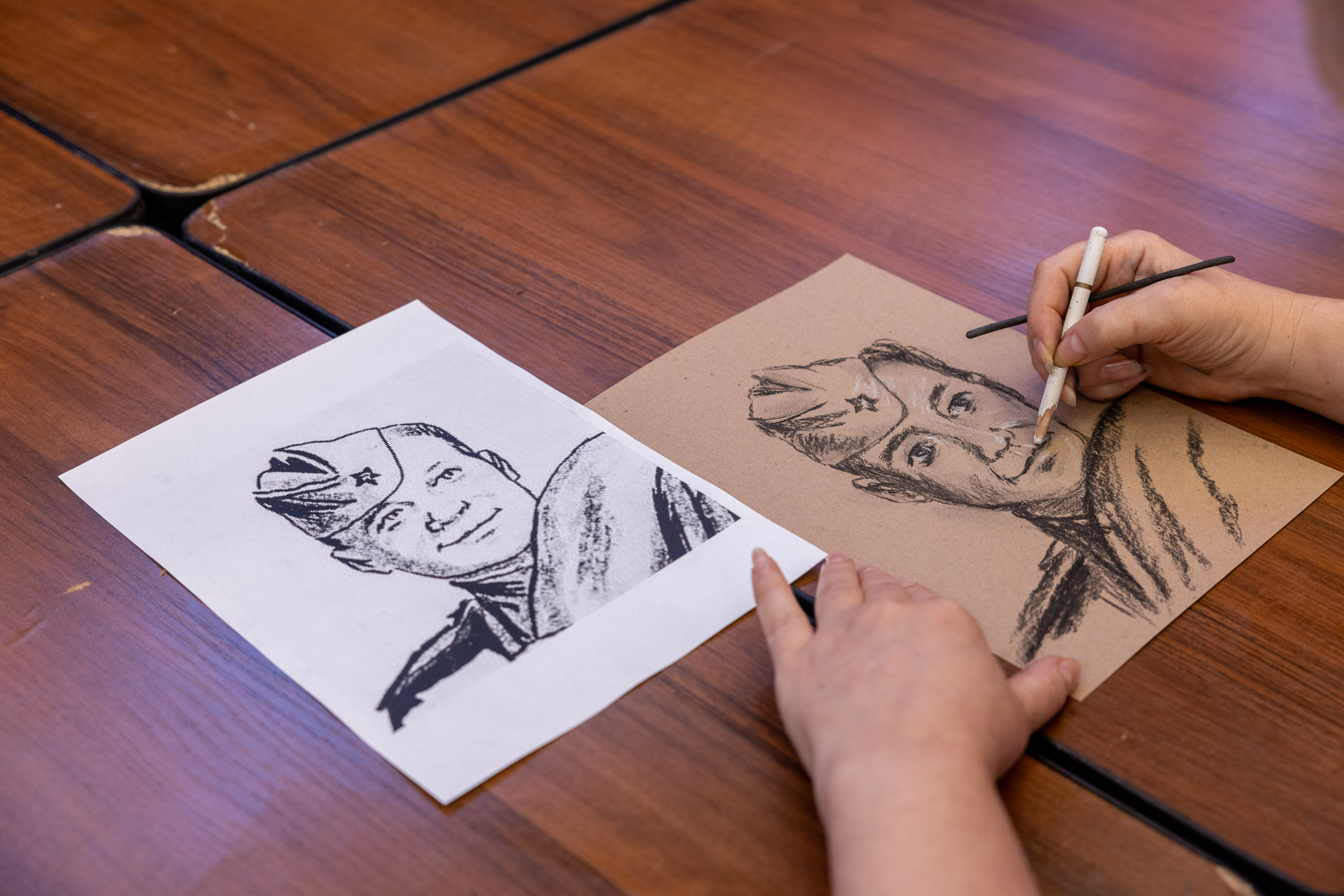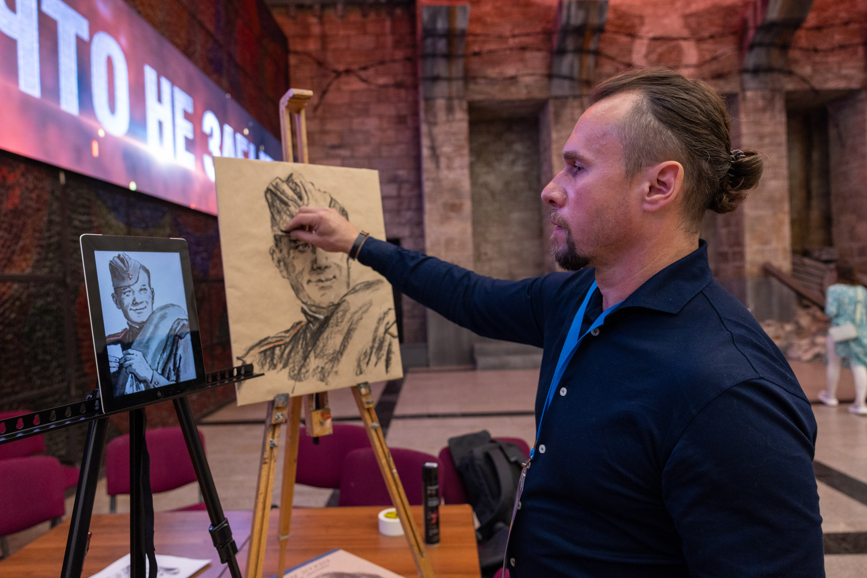 Участники мастер-класса рисовали портрет Василия Теркина — главного героя поэмы Александра Твардовского «Василий Теркин». Образ Теркина сам автор называл собирательным и утверждал, что у него нет конкретного прототипа.