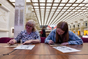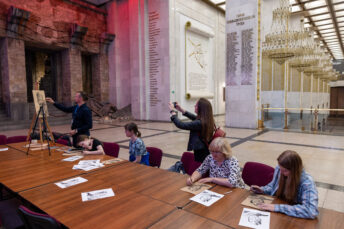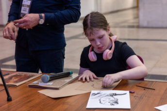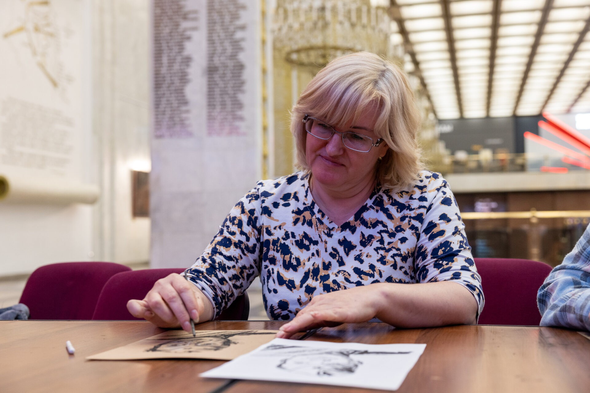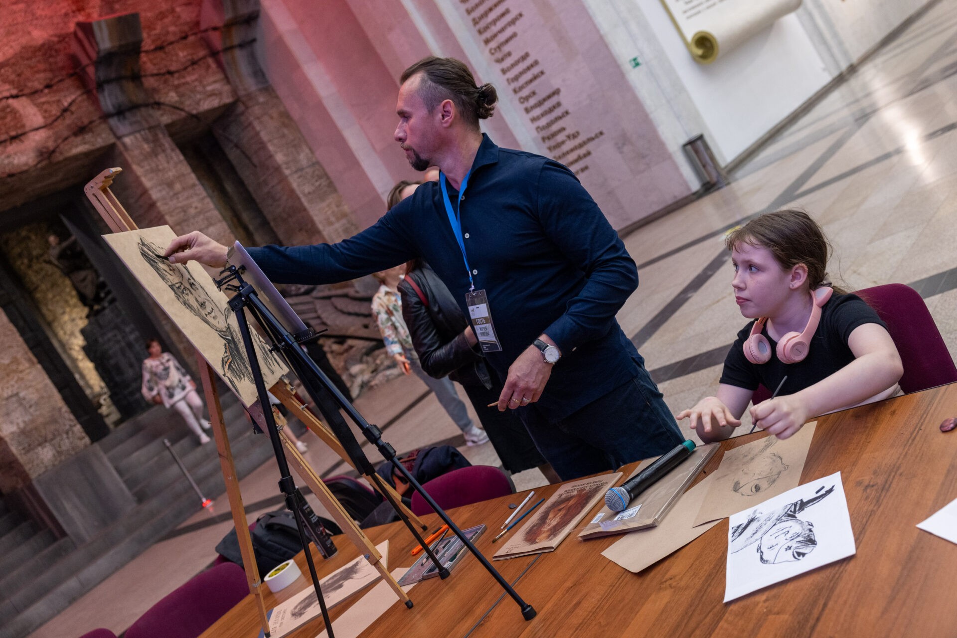 Участники мастер-класса рисовали портрет Василия Теркина — главного героя поэмы Александра Твардовского «Василий Теркин». Образ Теркина сам автор называл собирательным и утверждал, что у него нет конкретного прототипа.