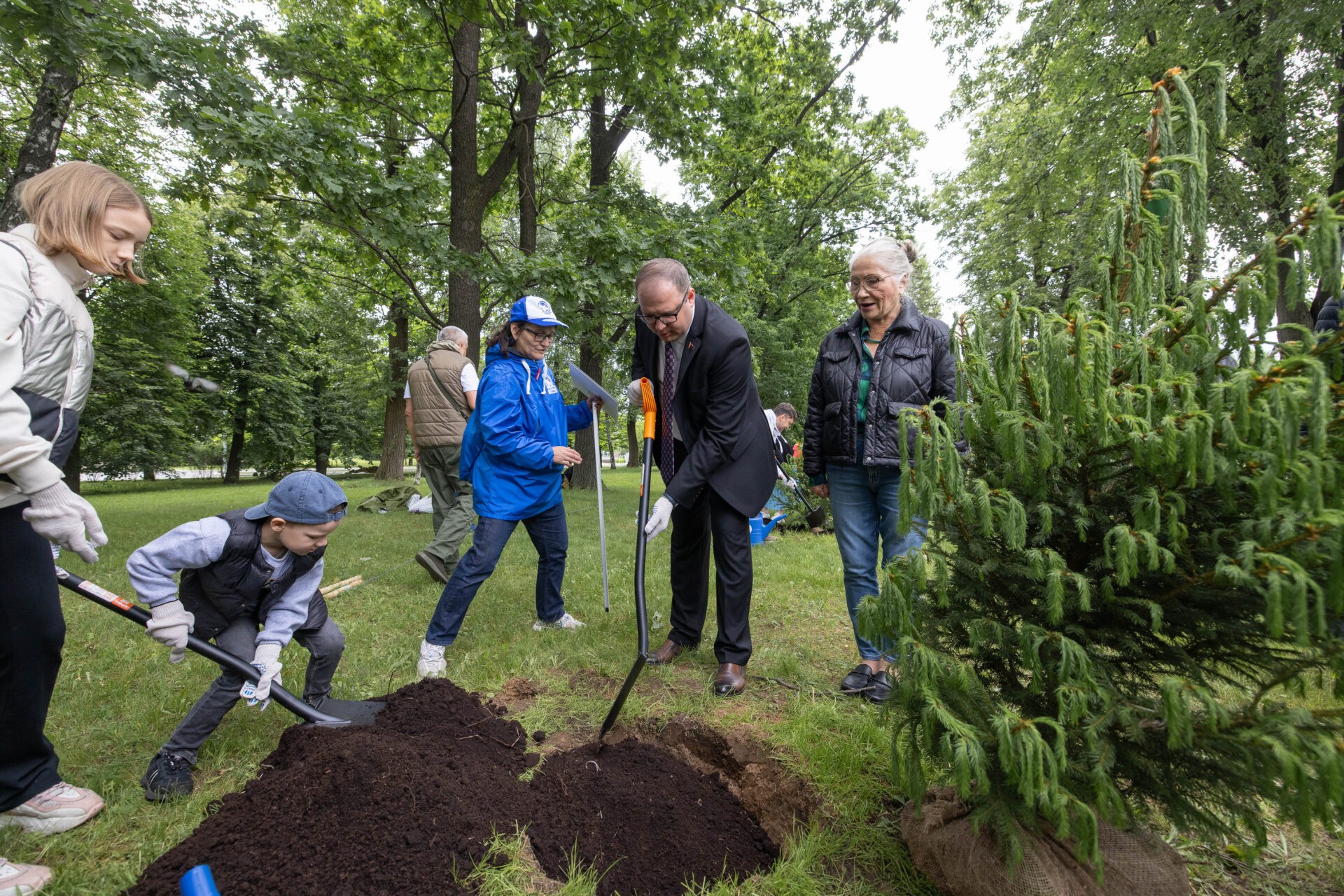 22 июня около Музея Победы традиционно прошло финальное мероприятие ежегодной международной акции «Сад памяти». На территории мемориального комплекса на Поклонной горе высадили 11 елей и установили табличку в память о героях Великой Отечественной войны.