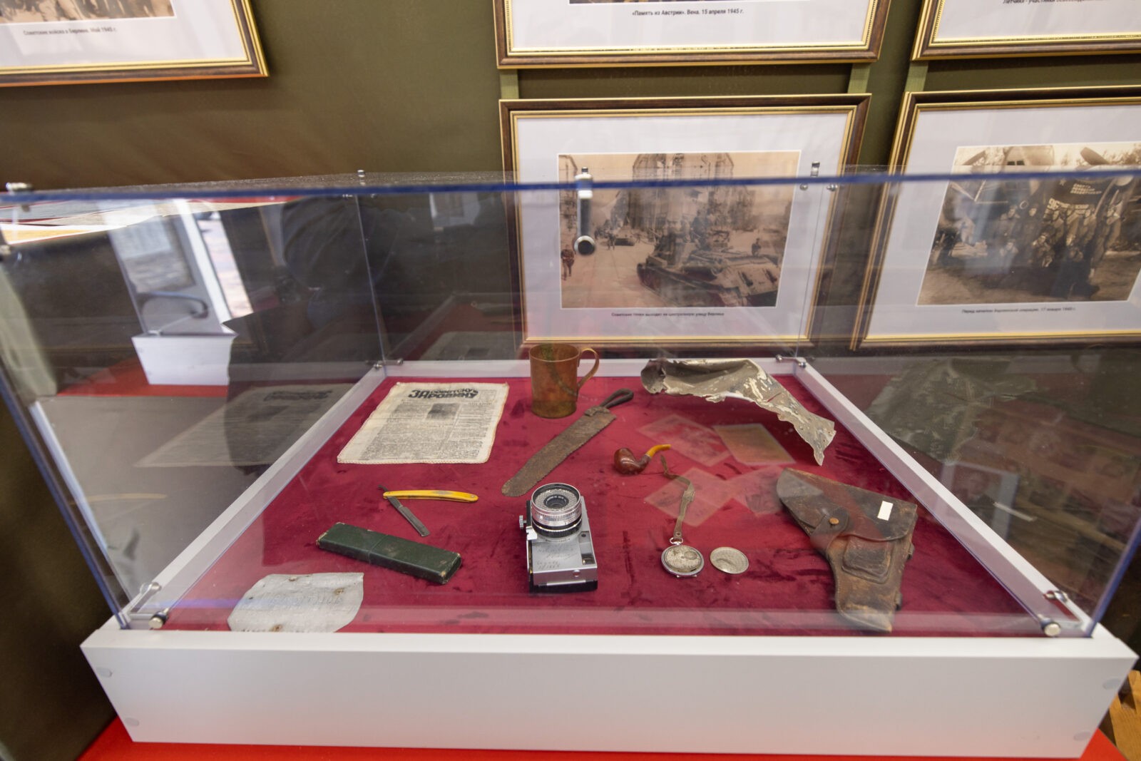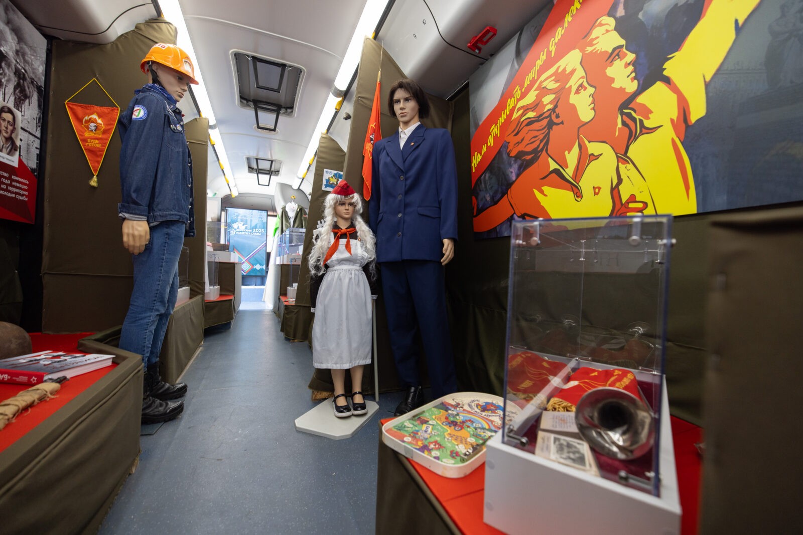 Участники форума посетили передвижную музейную экспозицию «Дорогами Памяти и Славы — 80 лет Победы». В двух автобусах разместили предметы одежды и вооружения бойцов Красной Армии, документы, памятные сувениры, фотографии. Среди уникальных реликвий — генеральский китель Героя Советского Союза, заслуженного военного летчика СССР генерал-полковника авиации Григория Дольникова, фотоаппарат «Зоркий-10» с дарственной надписью и автографом писателя Константина Симонова, летная книжка «ночной ведьмы» Анны Дудиной и многое другое. Также на площади представили два ретроавтомобиля — ГАЗ и «Победа».