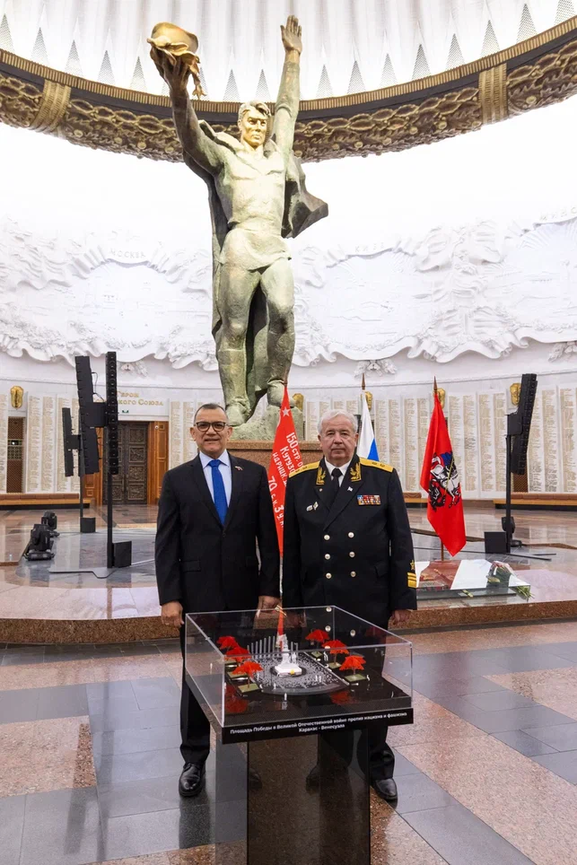 Посольство Республики Венесуэла передало в дар Музею Победы копию недавно открытого памятника в Каракасе, в честь 80-летия Победы в Великой Отечественной войне. Торжественная церемония состоялась в Зале Славы.