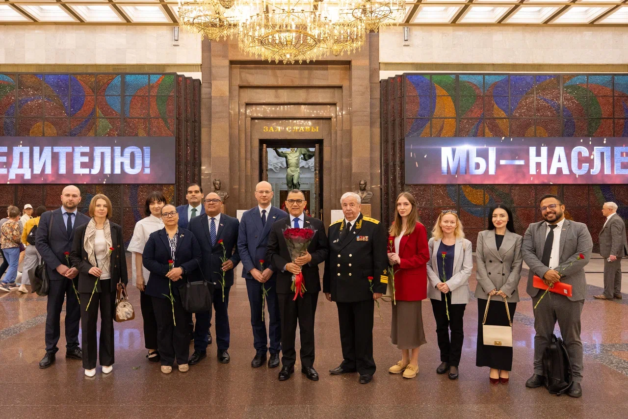Ранее сообщалось, что несколько десятков послов и сотрудников дипломатических миссий государств Латинской Америки и Карибского бассейна возложили в Музее Победы венки и цветы в память о павших воинах.
