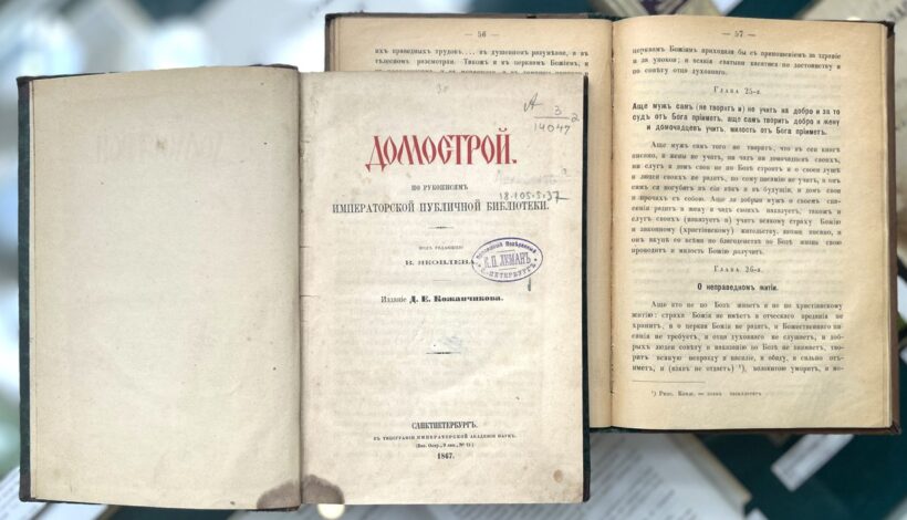 Среди экспонатов – «Домострой» в современном переводе. Это памятник письменности XVI в., своего рода энциклопедия семейной жизни, домашних обычаев и традиций. Один из разделов выставки посвящен отражению семейной темы в русской классической литературе XIX века.