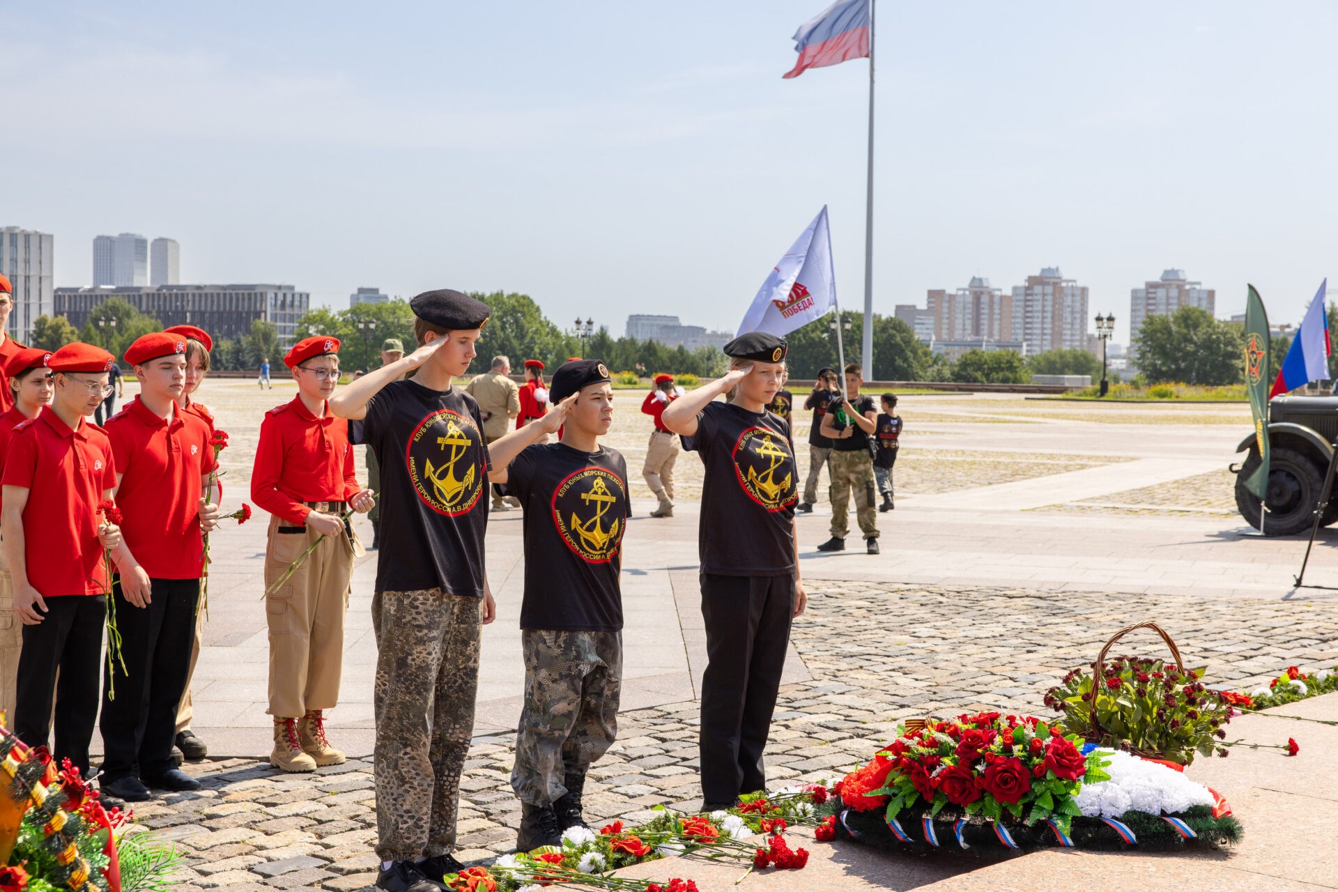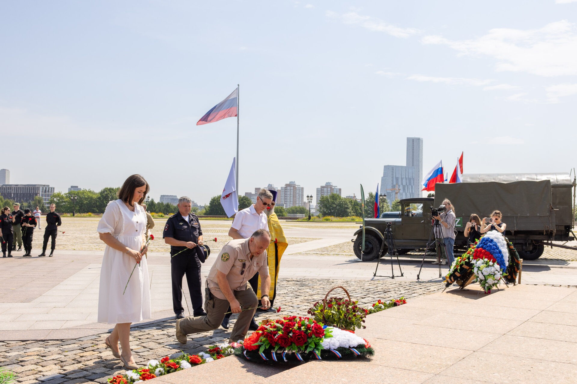В рамках церемонии собравшиеся также почтили память погибших в годы Великой Отечественной минутой молчания и возложили венки и цветы у Огня Памяти и Славы Монумента Победы на Поклонной горе.