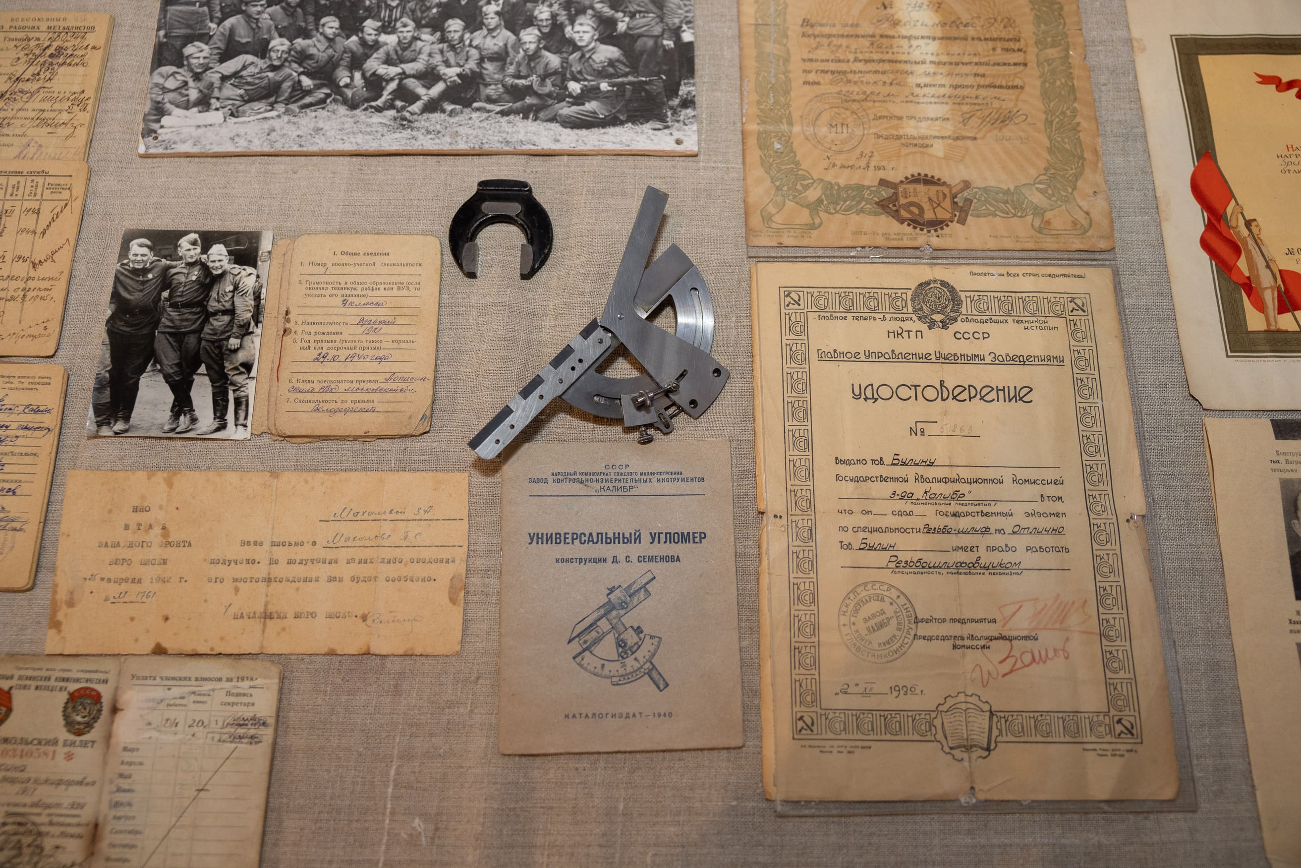 Музею Победы подарили раритеты военных лет из коллекции завода «Калибр», в том числе те, которые обеспечили первый залп «Катюши» в 1941 году и ее дальнейшее успешное использование. Среди документов: удостоверение директору завода на осмотр станочного оборудования на всех станциях железных дорог Московского узла (1942 год), комсомольские билеты Клавдии Ермолаевой и Марии Лесиной (1938 год), квитанция на принятые теплые вещи и белье для Красной Армии (1941 год), именной пропуск столичной комендатуры на беспрепятственный проезд по Москве (1941 год). А также иные рабочие и служебные свидетельства эпохи и оригинальные исторические снимки. Эти предметы в дальнейшем могут использовать при подготовке новых экспозиций.