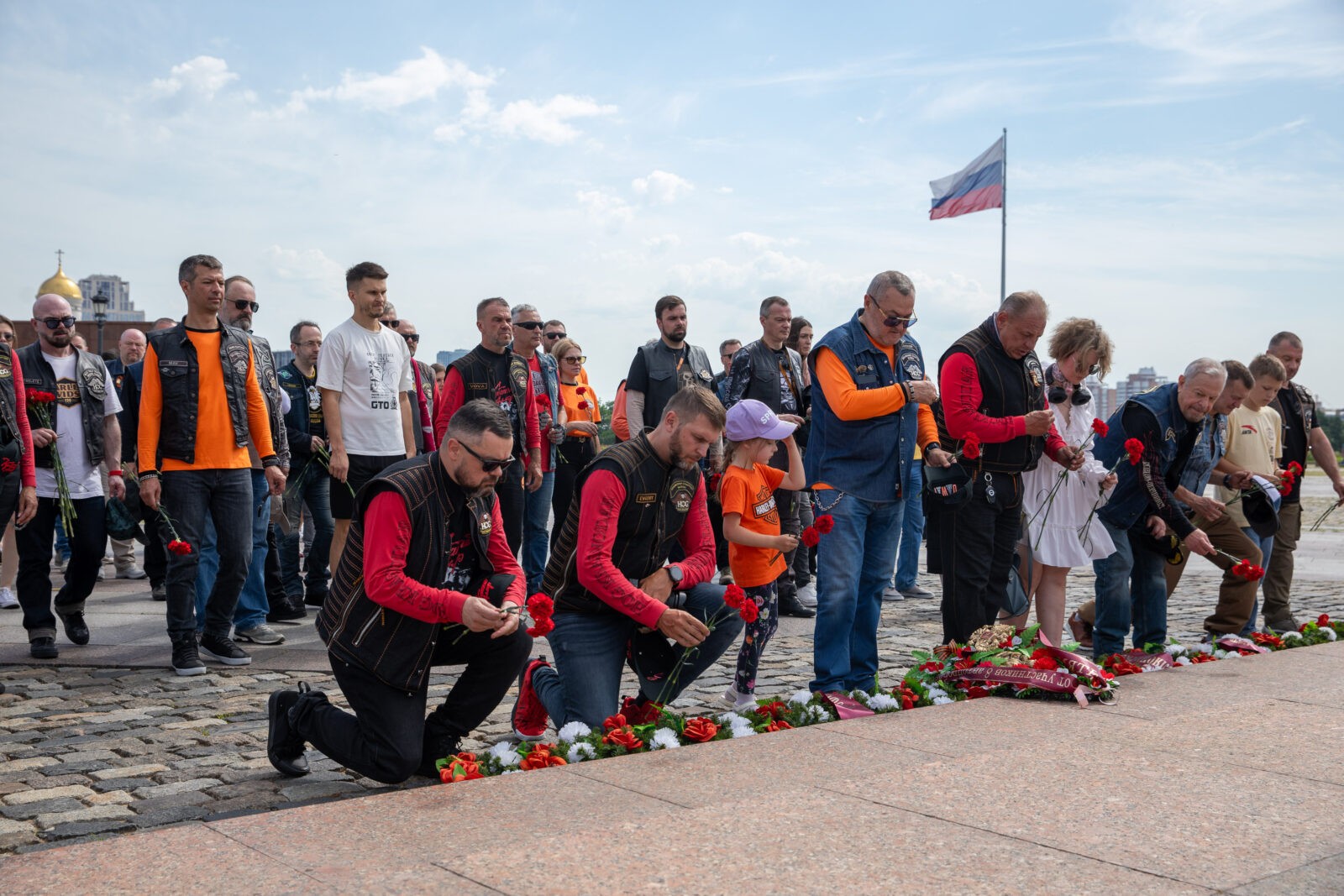 Колонна из 30 мотоциклов прибудет к подножию мемориала, чтобы провести торжественный митинг и возложить цветы в память обо всех павших в сражениях.