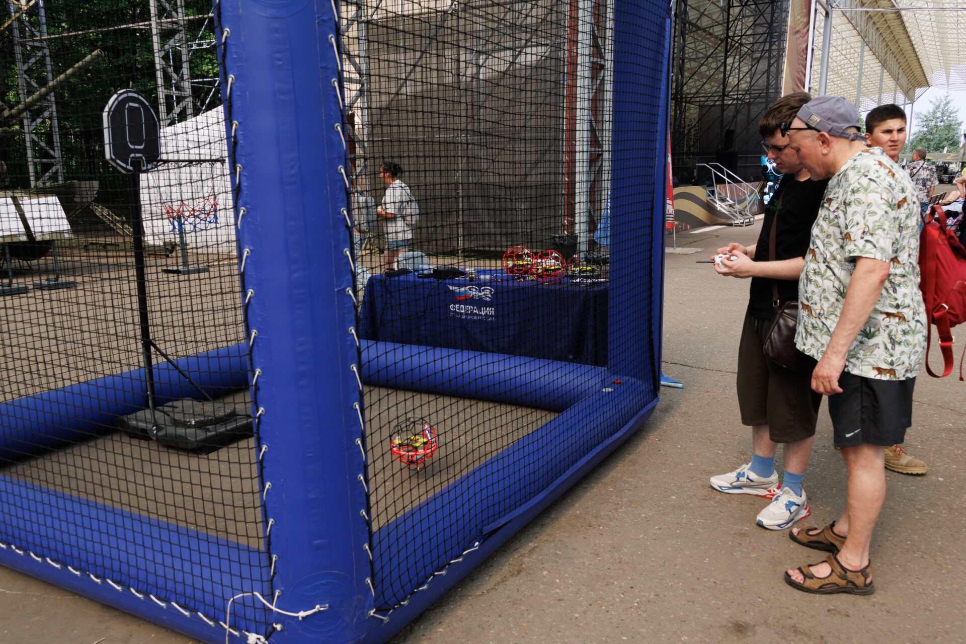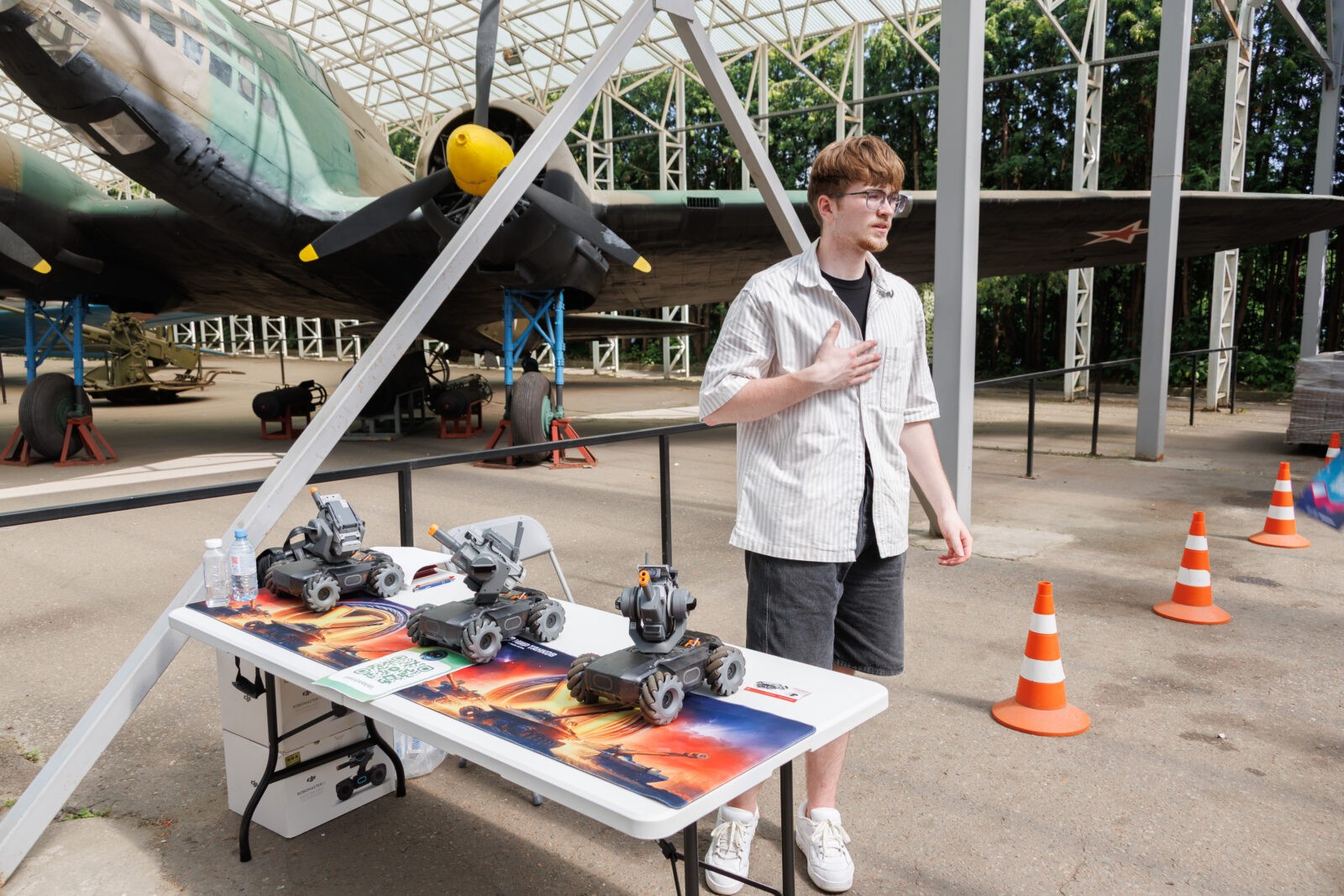 Участников и зрителей ждали соревнования по пилотированию дронов, битвы робо-танков RoboMaster S1, турнир по игре «Мир танков» в командах пять на пять человек, компьютерные симуляторы дронов VR, квизы с призами и концертная программа «Песни военных лет».