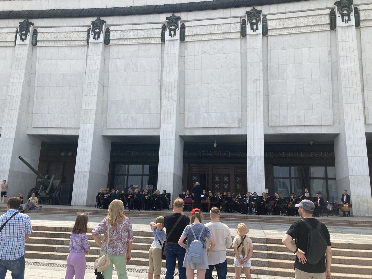 Государственный академический русский народный оркестр «Малахит» из Челябинска выступил в колоннаде Музея Победы. Концерт состоялся в рамках бесплатной программы «Парк Победы. Главный патриотический».