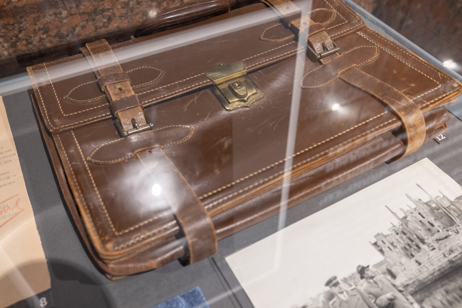 Также в экспозицию вошли более 30 подлинных экспонатов из фондов Музея Победы. Посетители могут увидеть документы и личные вещи представителей советской делегации. Например, дипломатический портфель Чрезвычайного и полномочного посла СССР в США Андрея Громыко, папку для доклада и наручные часы начальника штаба ВВС маршала авиации Федора Фалалеева, служебный пропуск на конференцию старшего помощника наркома иностранных дел СССР Бориса Подцероба.