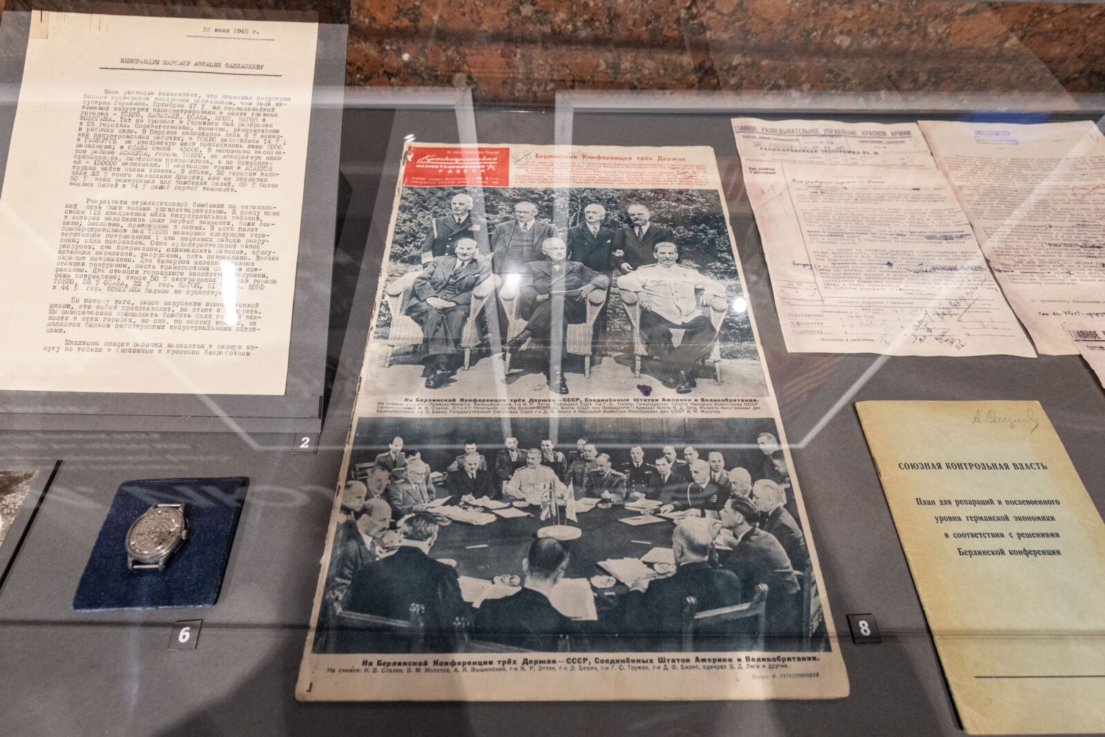 Выставка «Потсдам. Июль 1945», приуроченная к 80-летию Потсдамской конференции, открылась в Музее Победы. Временная экспозиция рассказывает о последней официальной встрече лидеров трех крупнейших держав антигитлеровской коалиции, проходившей с 17 июля по 2 августа 1945 года во дворце Цецилиенхоф, а также о роли военной разведки СССР во время подготовки к конференции.