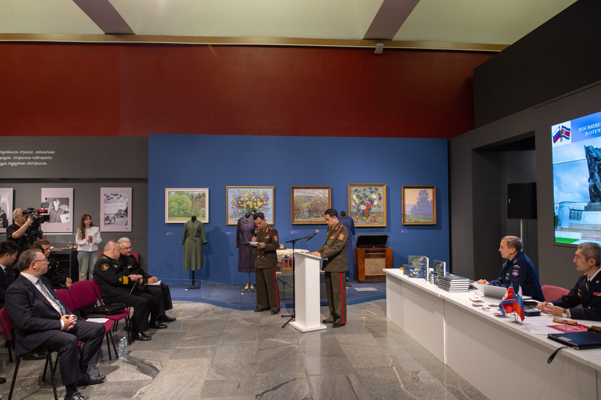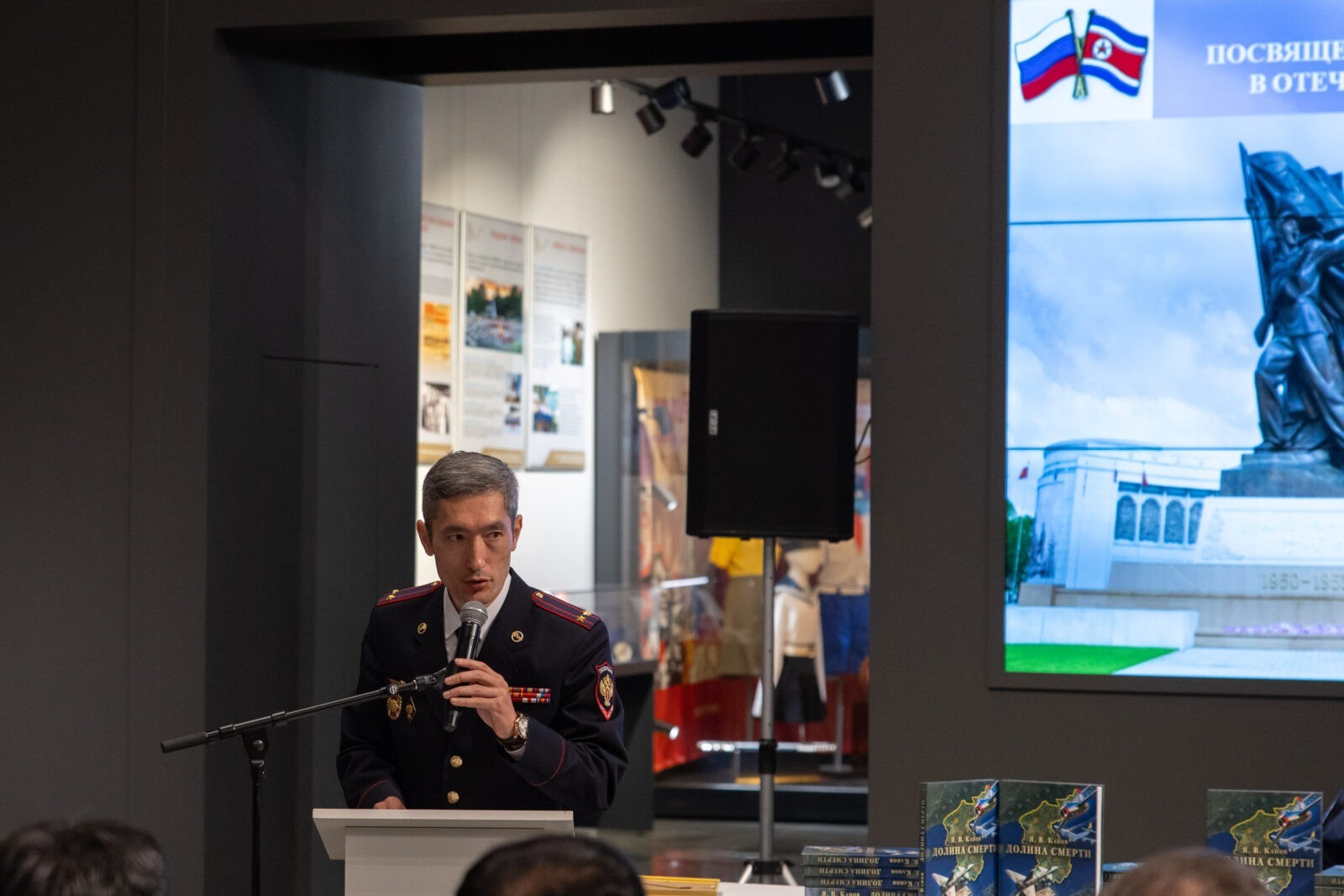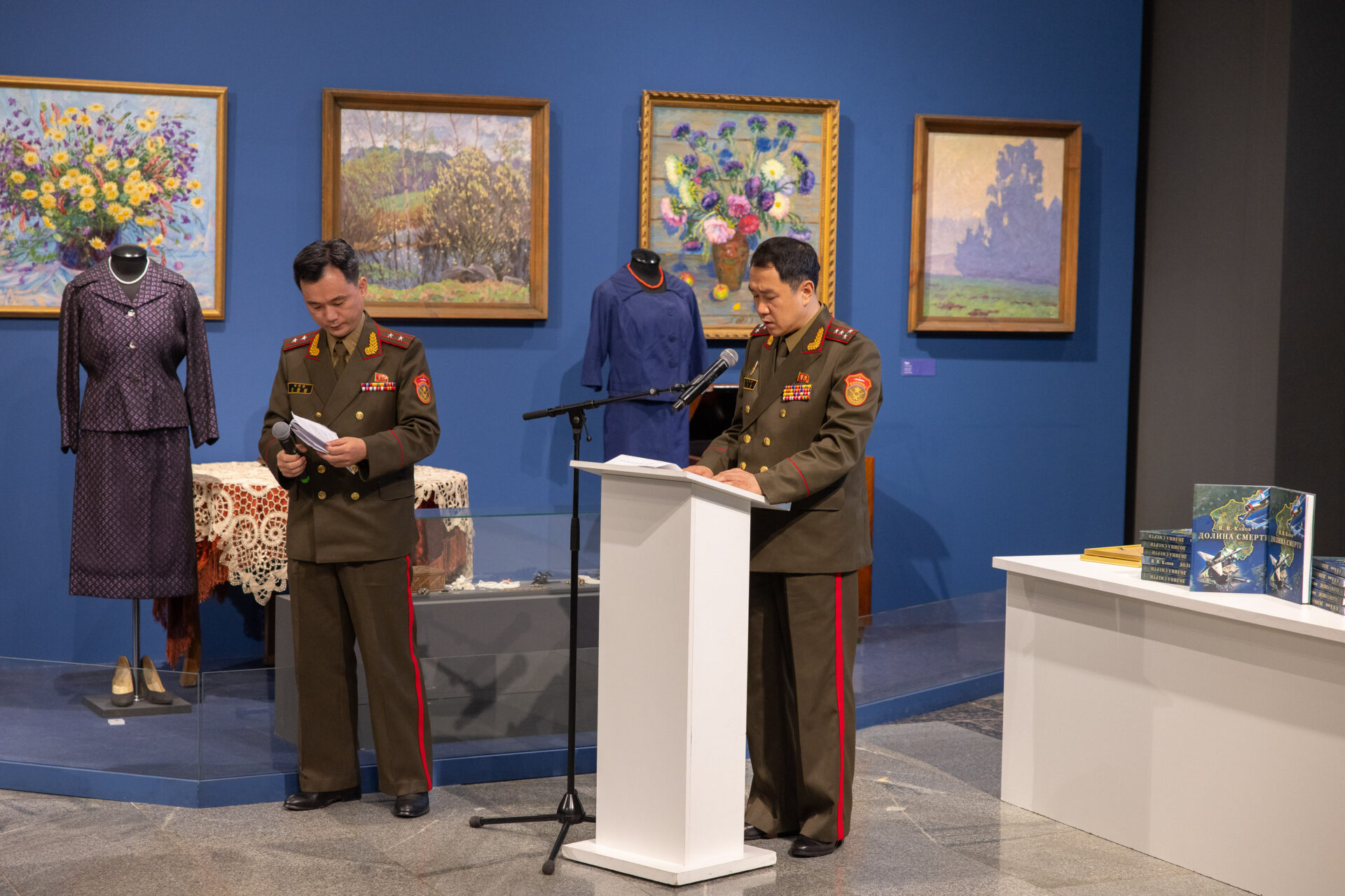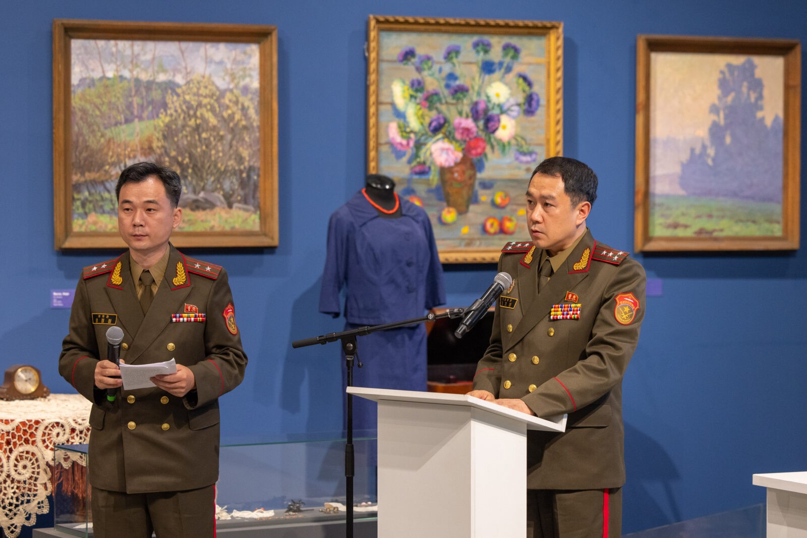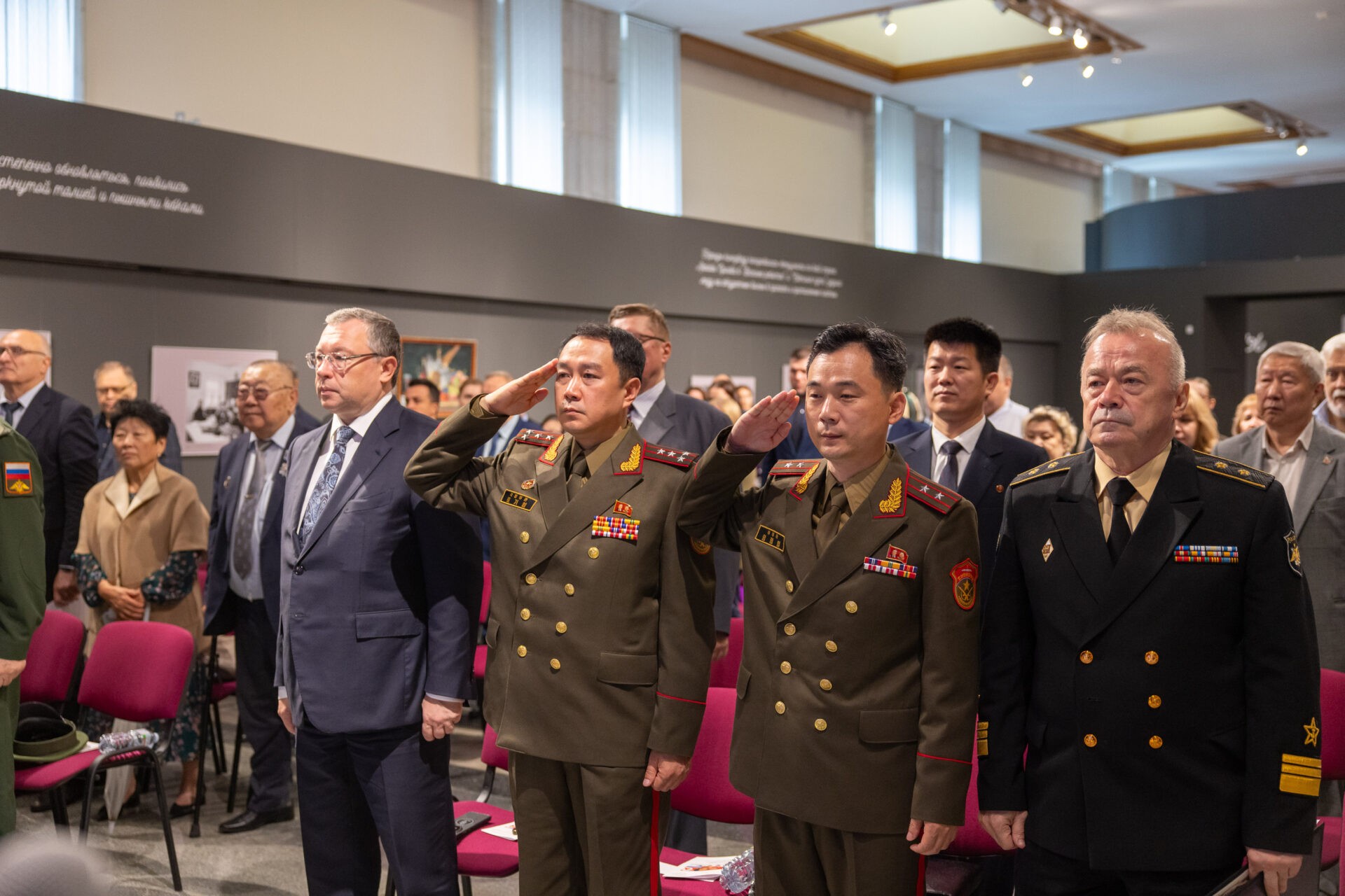 С приветственным словом выступили атташе по вопросам обороны Посольства КНДР в РФ старший полковник Ро Ги Чхоль, ведущий научный сотрудник Центра корейских исследований Института Китая и современной Азии РАН Ким Ен Ун, председатель совета по патриотическому воспитанию ОРО «Офицеры России и Герой России Александр Головашкин.