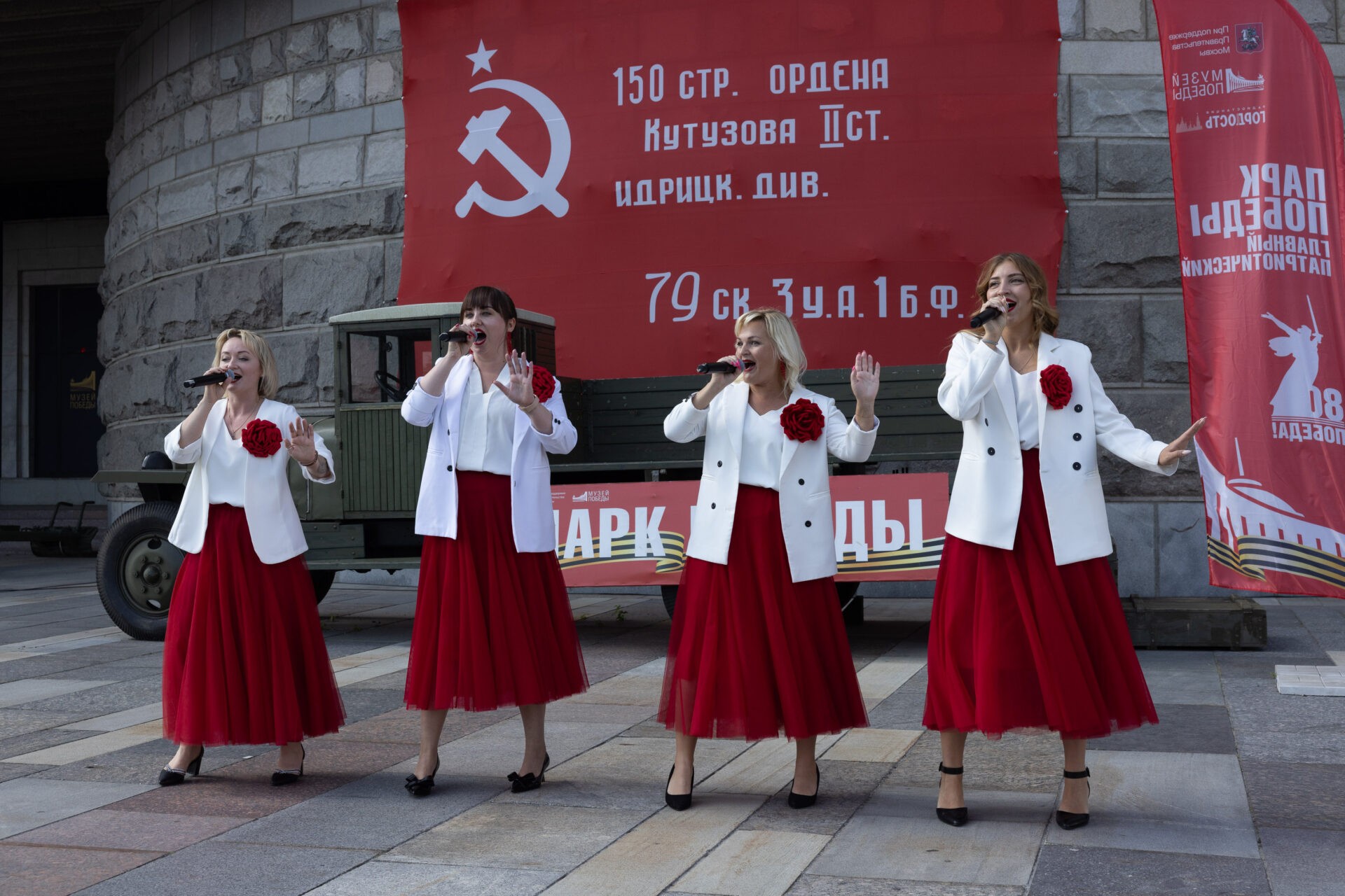 Всего же около Музея Победы работали 80 интерактивных площадок с элементами исторической реконструкции, воссоздающих атмосферу 1940-х годов. А на площадке «Фронтовая агитбригада» выступили участники и победители Всероссийского фестиваля «Душа баяна» и артисты продюсерского центра «Voytenko.pro». В колоннаде Музея Победы прошел концерт лауреата международных конкурсов, солистки Московской филармонии Оксаны Биленькой. На главной сцене музея «Г.О.Р.А.» праздничное настроение создавали артисты Москонцерта.