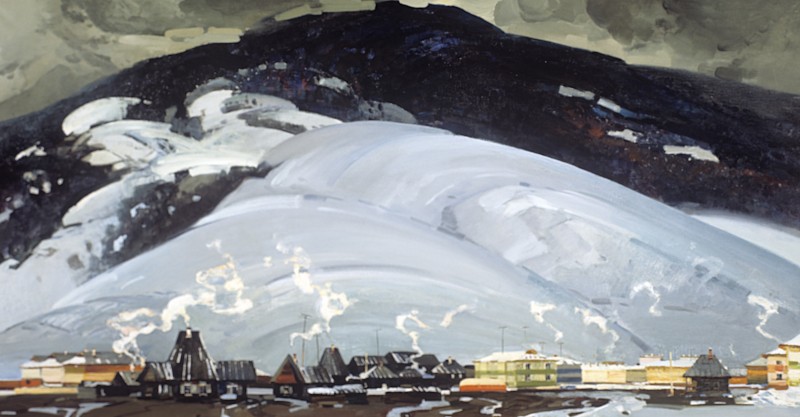 - 01.01.1968 года. Репродукция картины заслуженного художника РСФСР Виталия Сергеевича Рогаля «Байкальск» из цикла «Сибирь» (1965-1967). Всесоюзная художественная выставка «50-летие Великого Октября» в Москве. Михаил Кулешов / РИА Новости