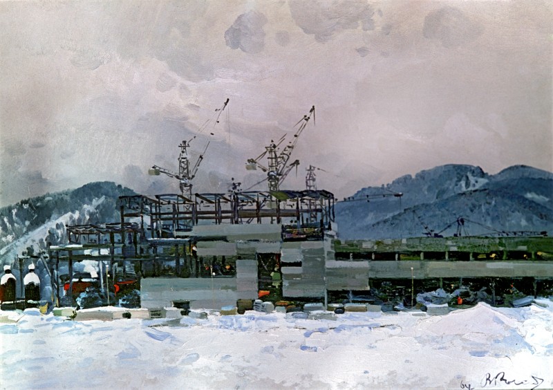 - 01.01.1967 года. Репродукция картины Виталия Рогаля «Усть-Илим». Свердлов / РИА Новости