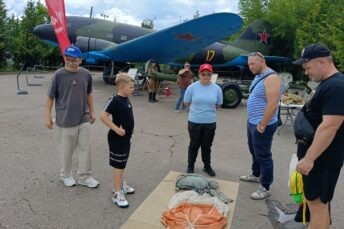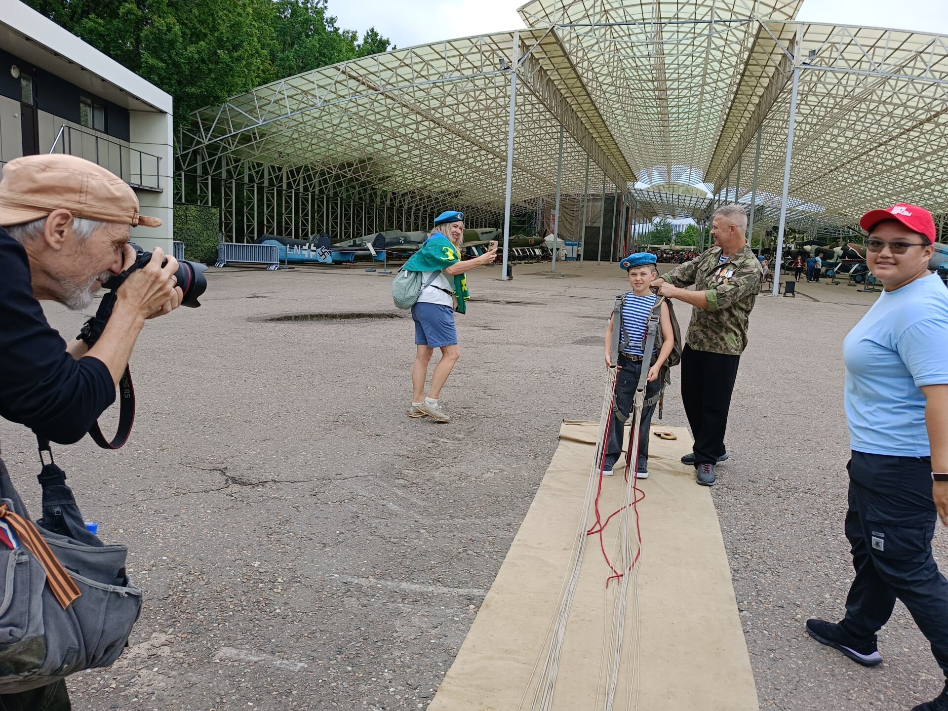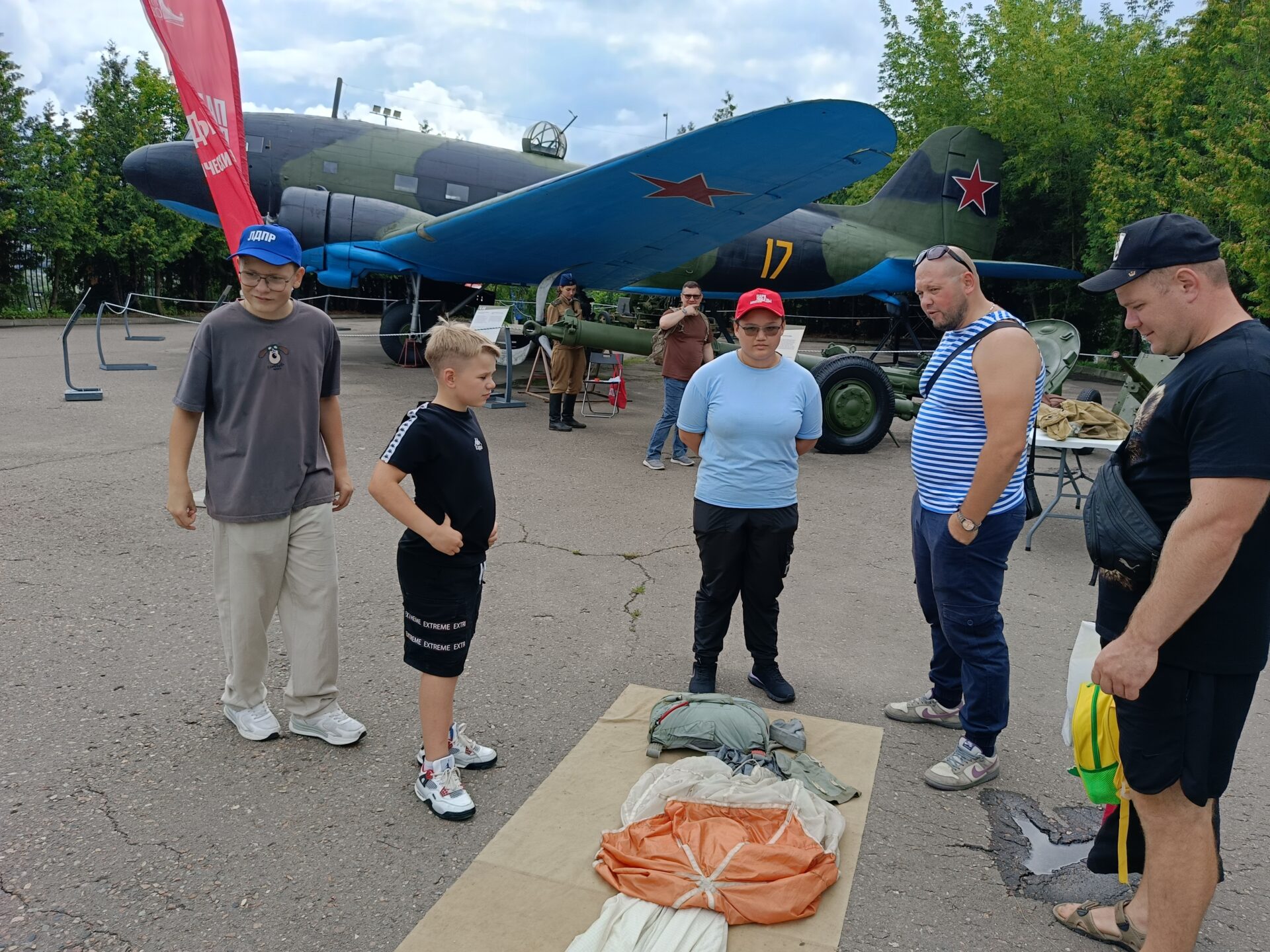 В музее «Г.О.Р.А.» в авиационной локации под крылом легендарного самолета Ли-2 посетители могли больше узнать о парашютах ВДВ.