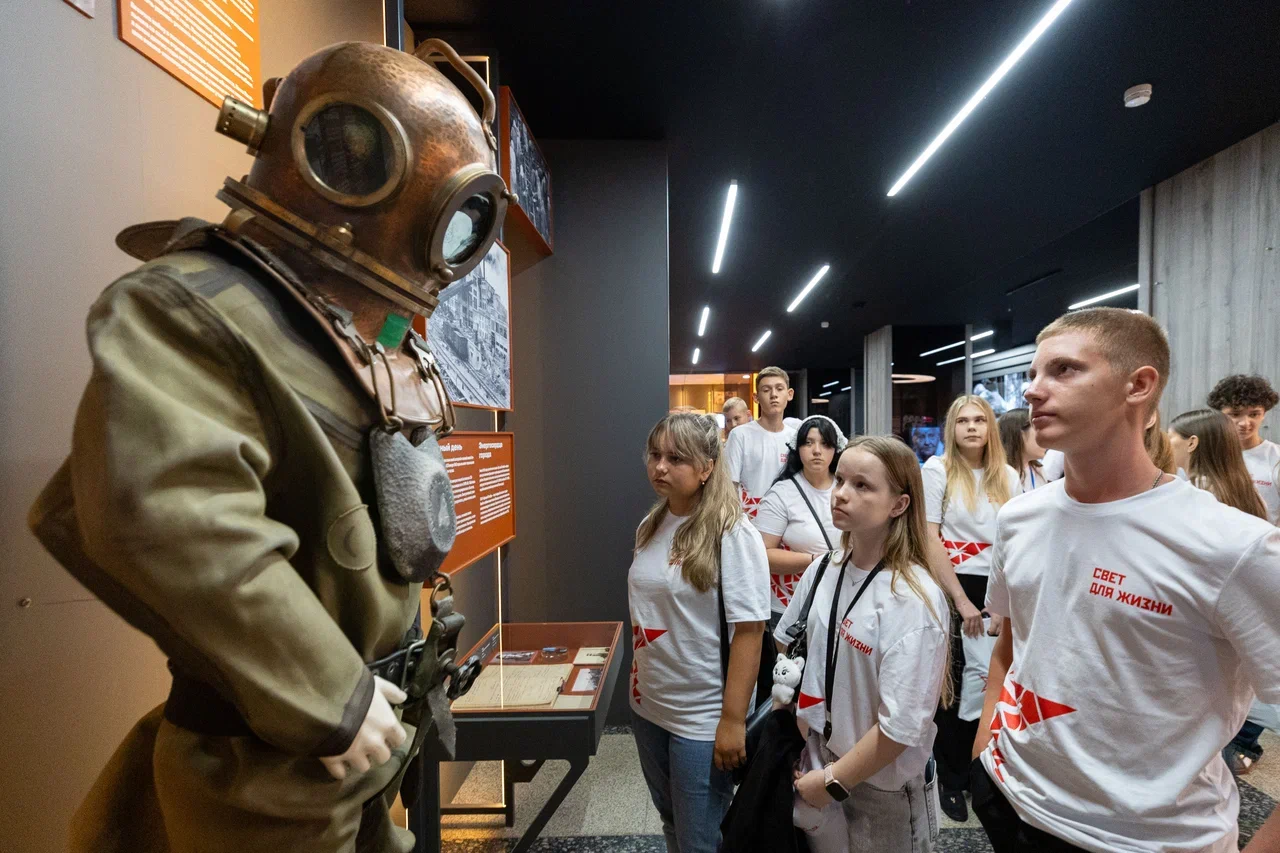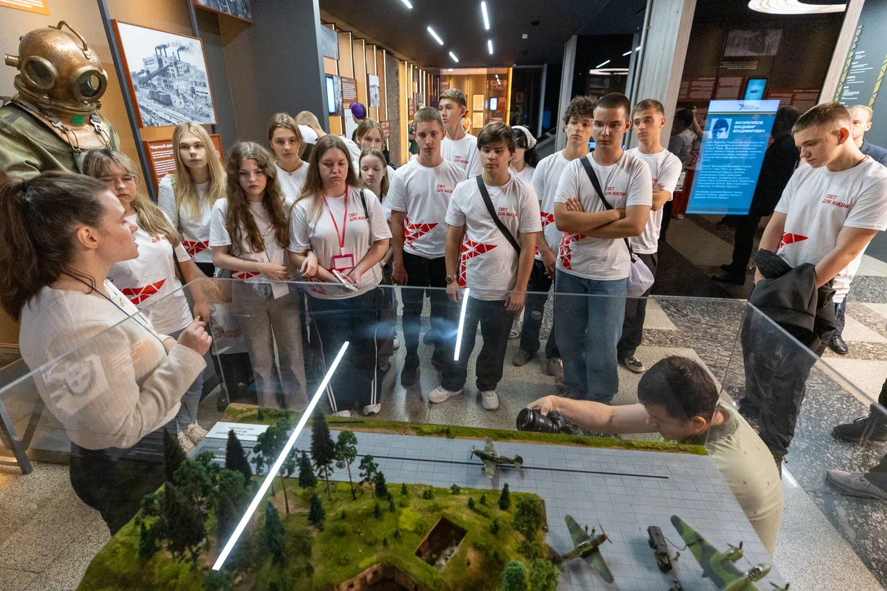 Ребята уже побывали на экскурсии по уникальной иммерсивной экспозиции Музея Победы «Подвиг Народа» и осмотрели выставку музея «Дважды победители», которая рассказывает о вкладе топливно-энергетического комплекса страны в Победу.