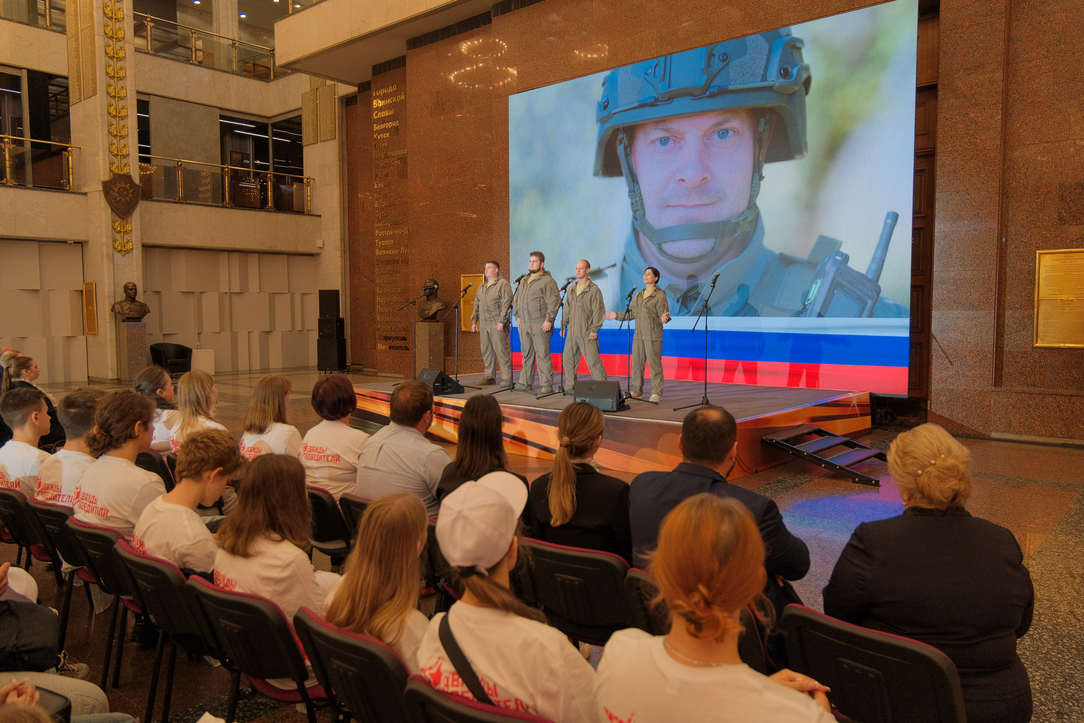 В Музее Победы дети из города Горловки (Донецкая Народная Республика) узнали о вкладе работников топливно-энергетического комплекса в Победу и о важности сохранения исторической памяти. Во встрече, которая состоялась в Зале Полководцев, приняли участие около 150 детей в возрасте от 13 до 17 лет.